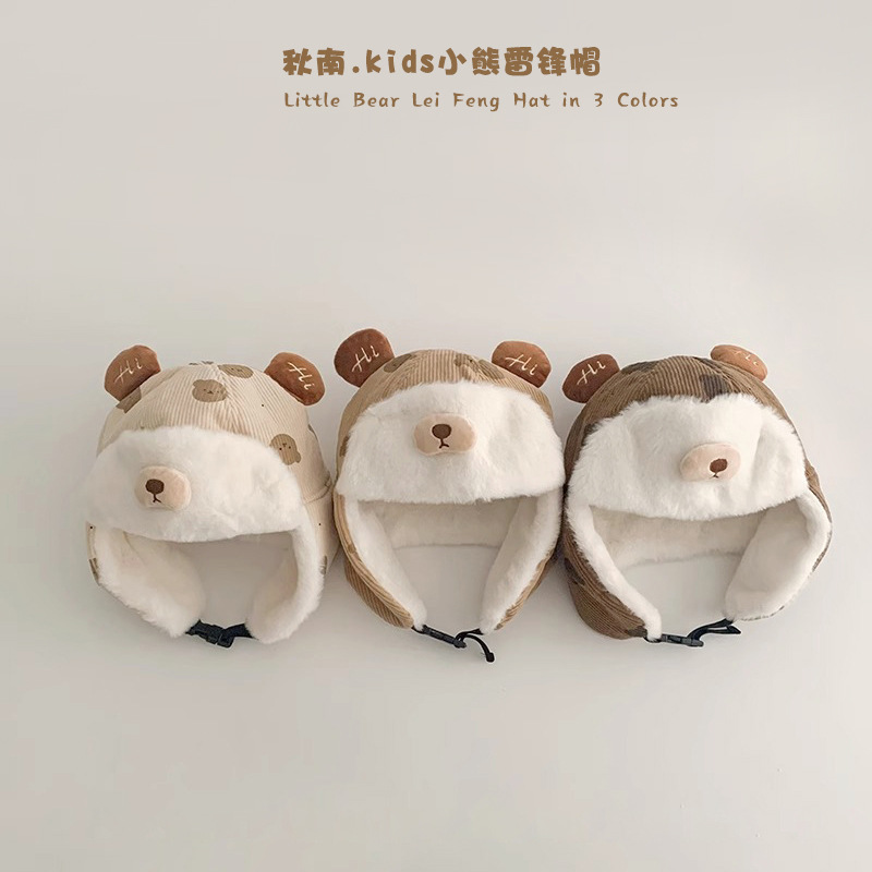 宝宝帽子秋冬加厚防风帽可爱卡通韩版护耳帽男女童加棉保暖雷锋帽