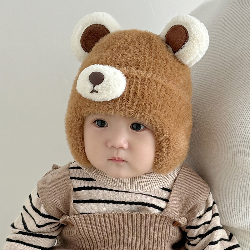 宝宝护耳帽子秋冬季可爱卡通百搭套头针织帽男女小月龄婴儿水貂绒