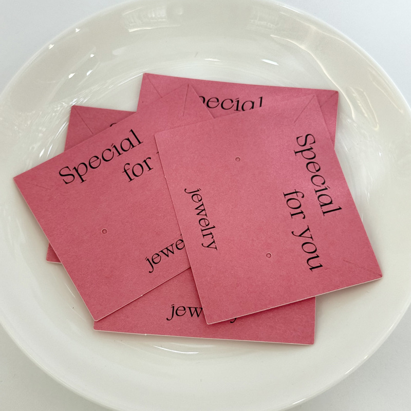 磨砂质感粉色耳钉项链一体卡纸高档饰品包装展示卡片耳环纸卡
