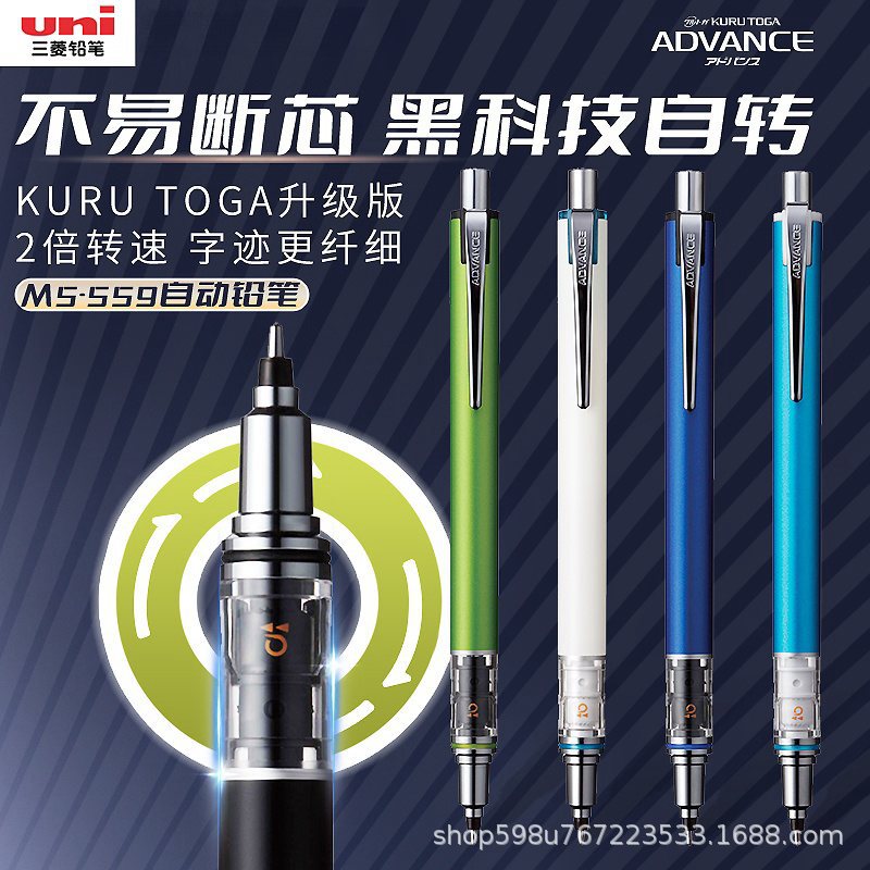日本uni三菱自动铅笔M5-559自动旋转活动铅笔不易断芯二倍速旋转