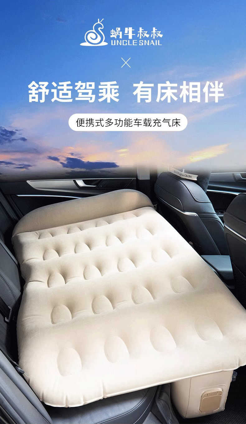 カタツムリのおじさんの車に空気入れるベッドsuv乗用車の車のエアクッションのベッドの後ろに並んで寝ます。