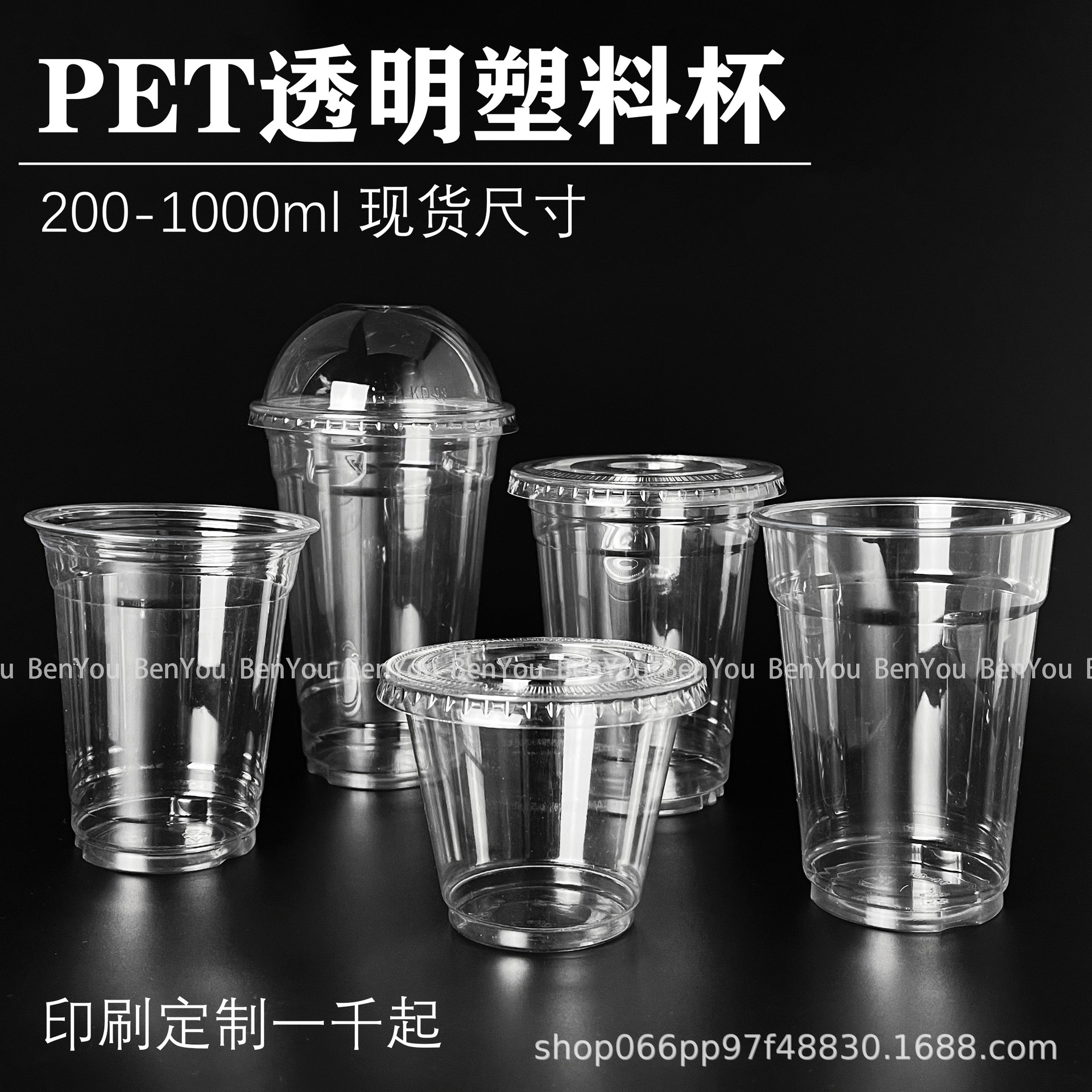使い捨てpetプラスチックカップ透明業務用冷たいコーヒーミルクティーメーカー直販卸売り90/92/98口径