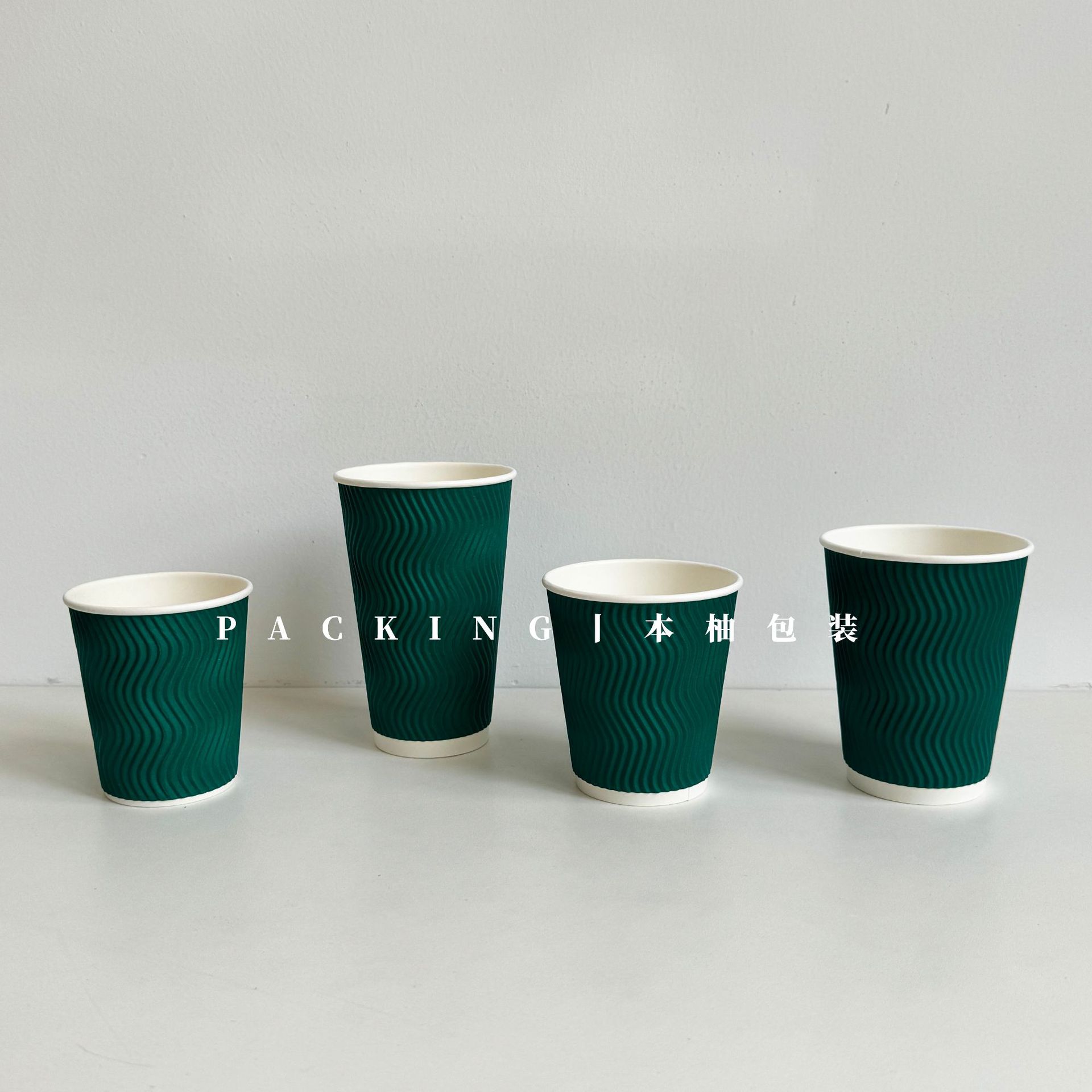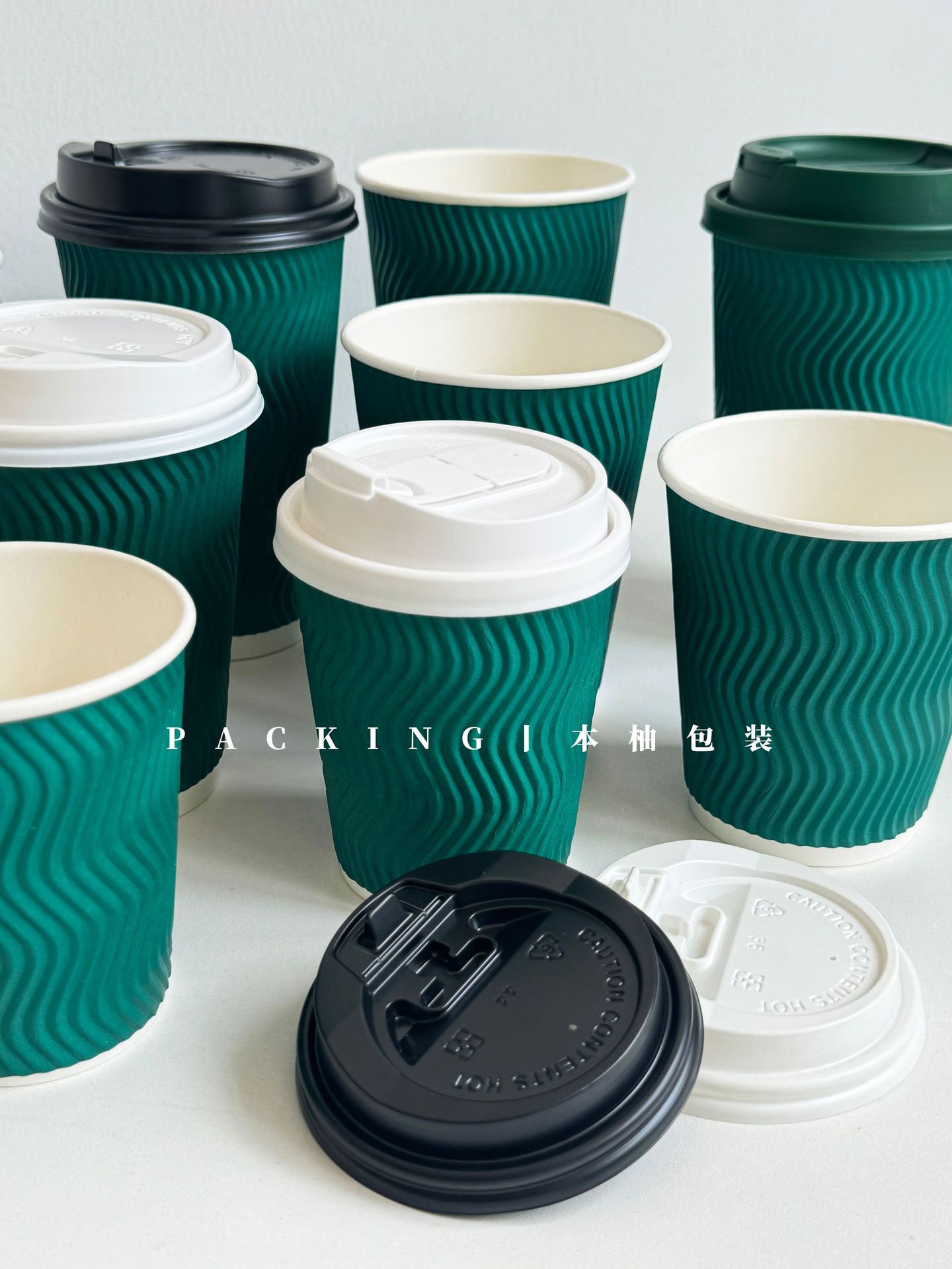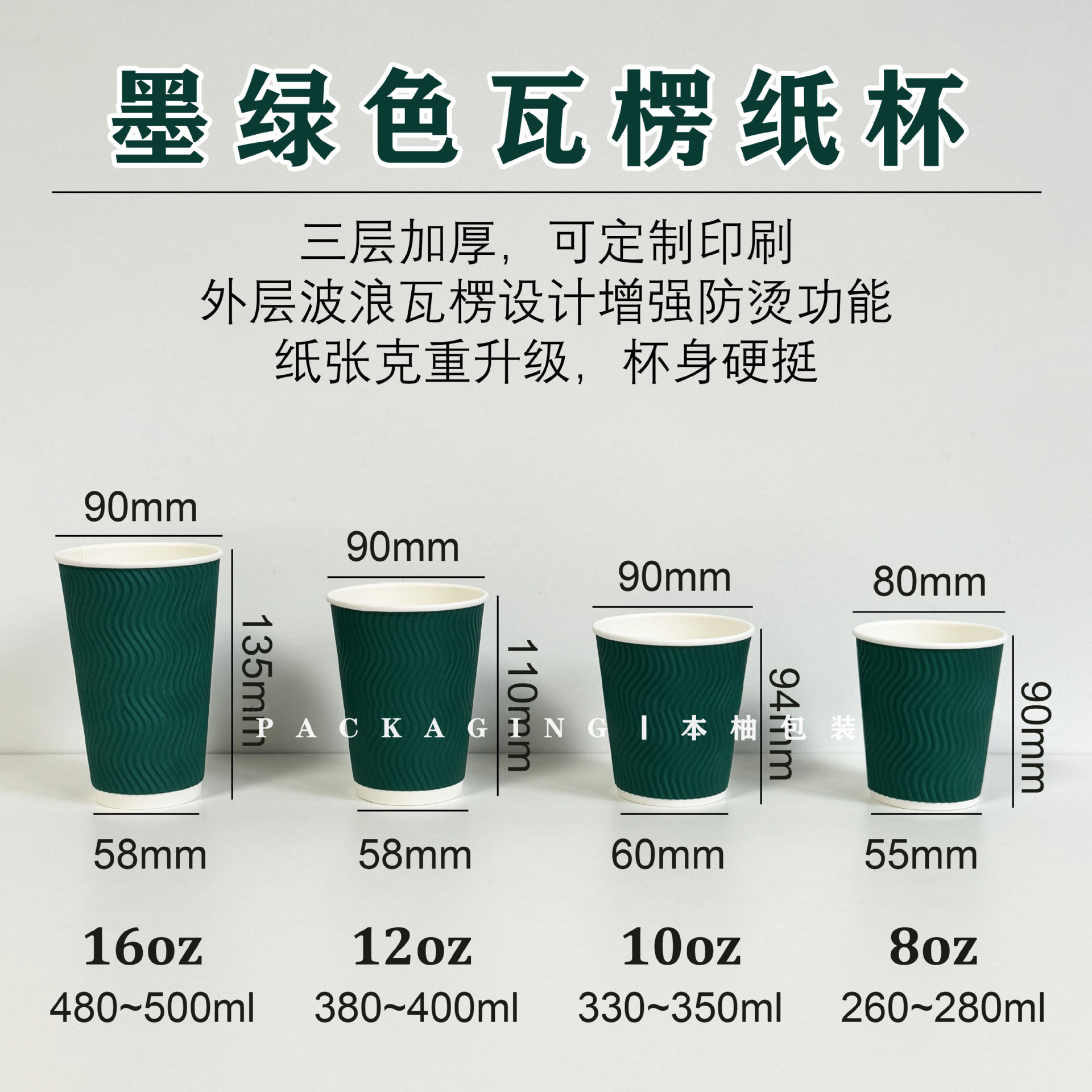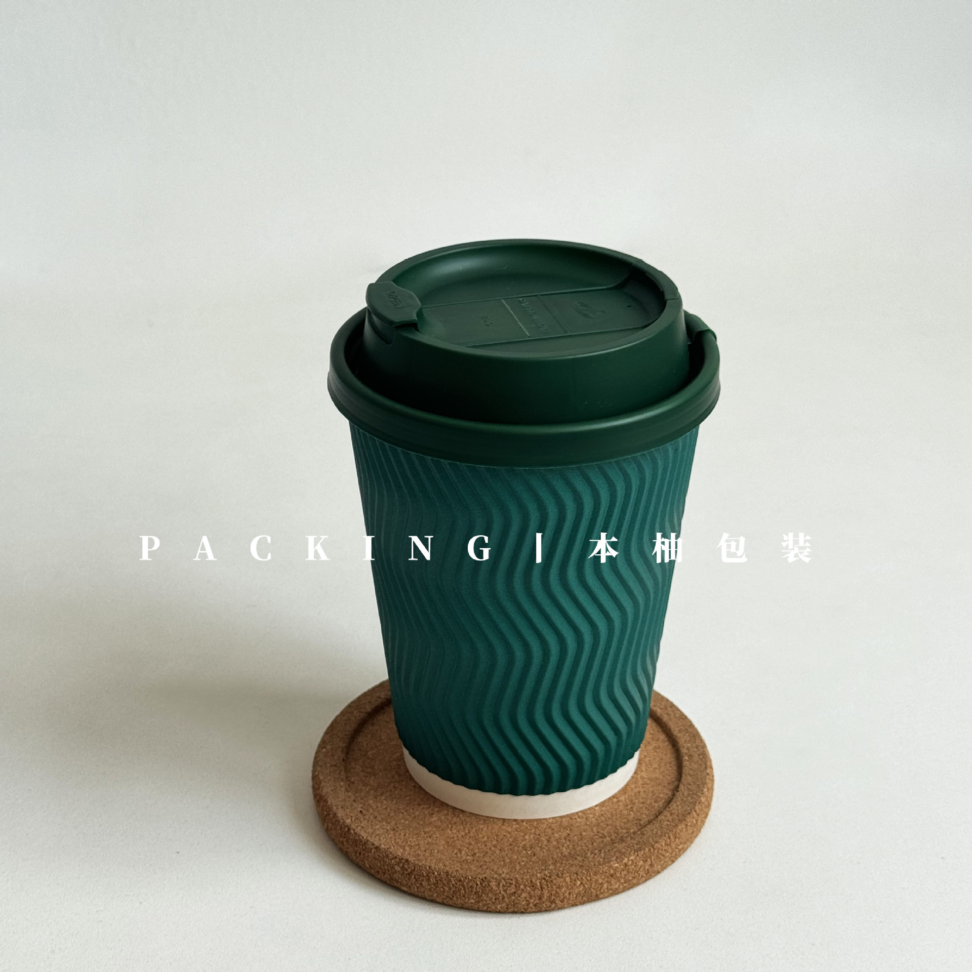墨緑段ボール二重使い捨て紙コップ厚手断熱コーヒー家庭用テイクアウト防漏蓋付き印刷可能ロゴ