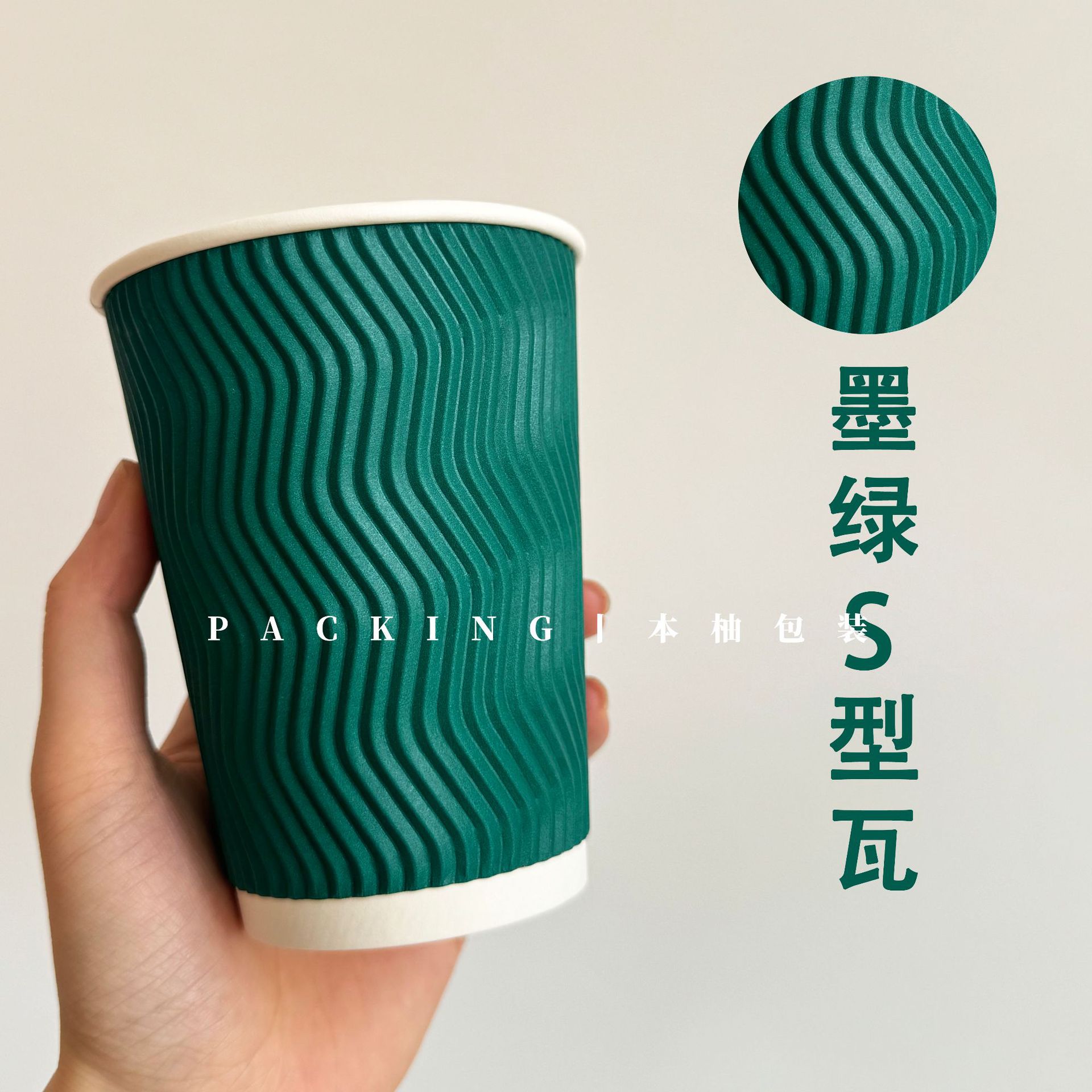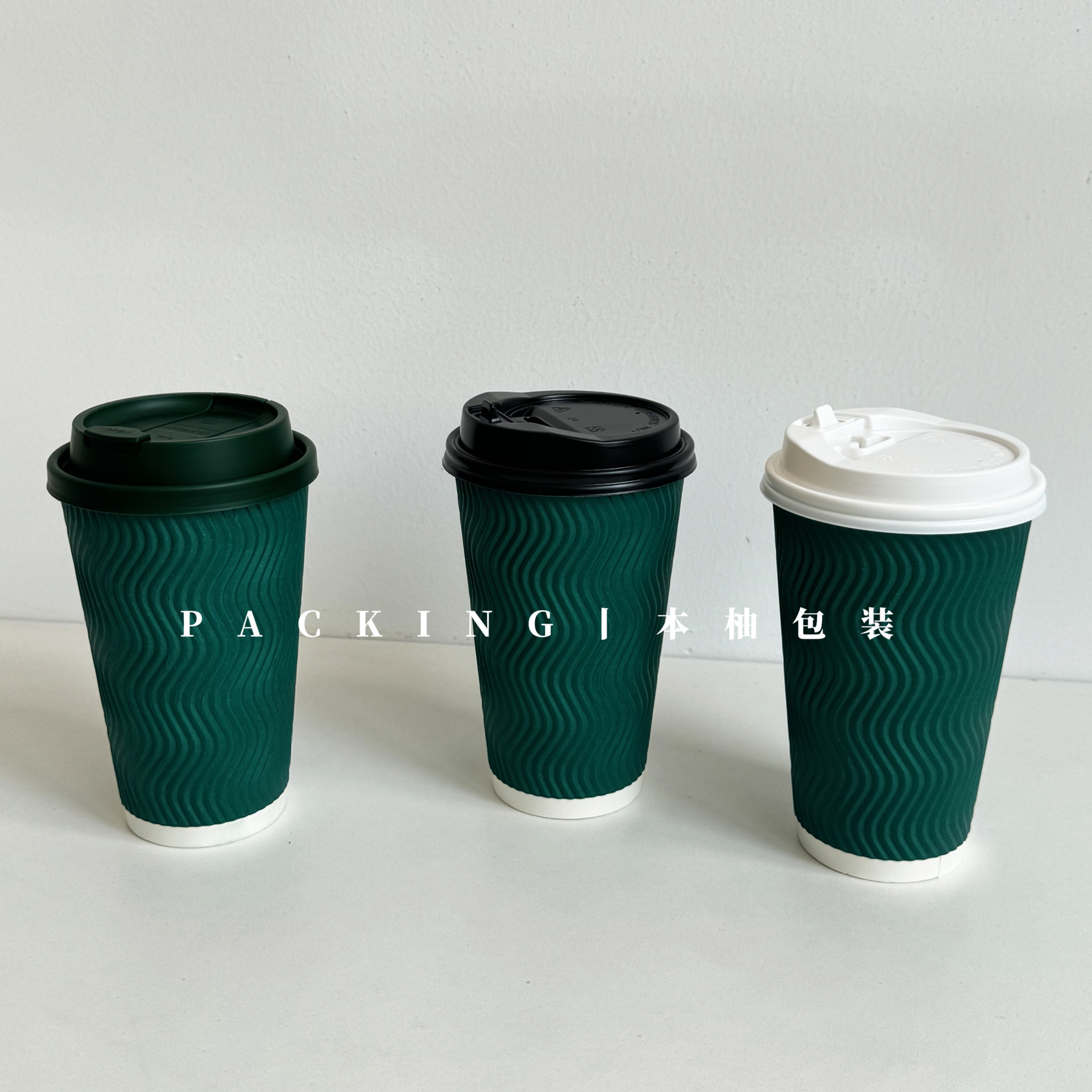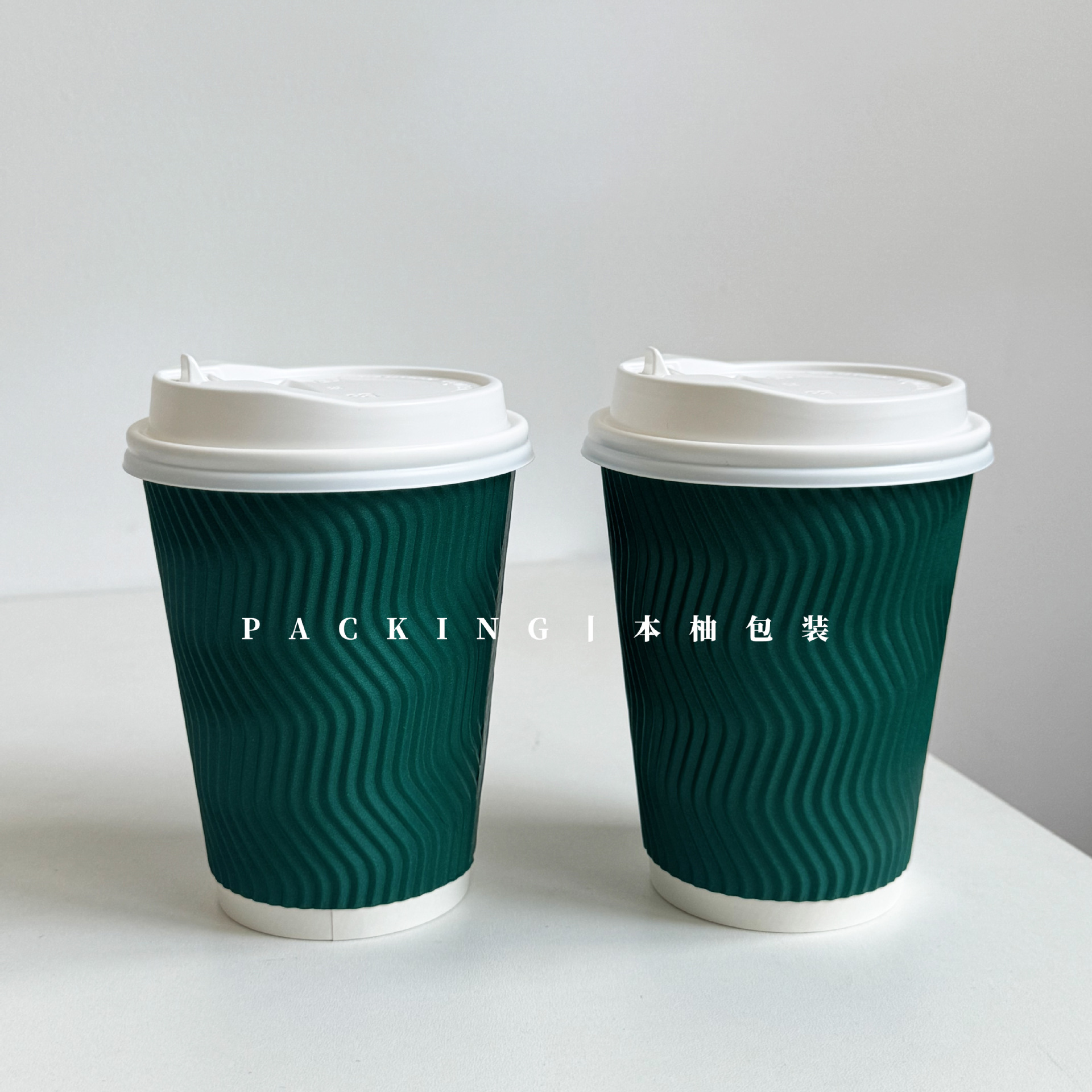 墨緑段ボール二重使い捨て紙コップ厚手断熱コーヒー家庭用テイクアウト防漏蓋付き印刷可能ロゴ