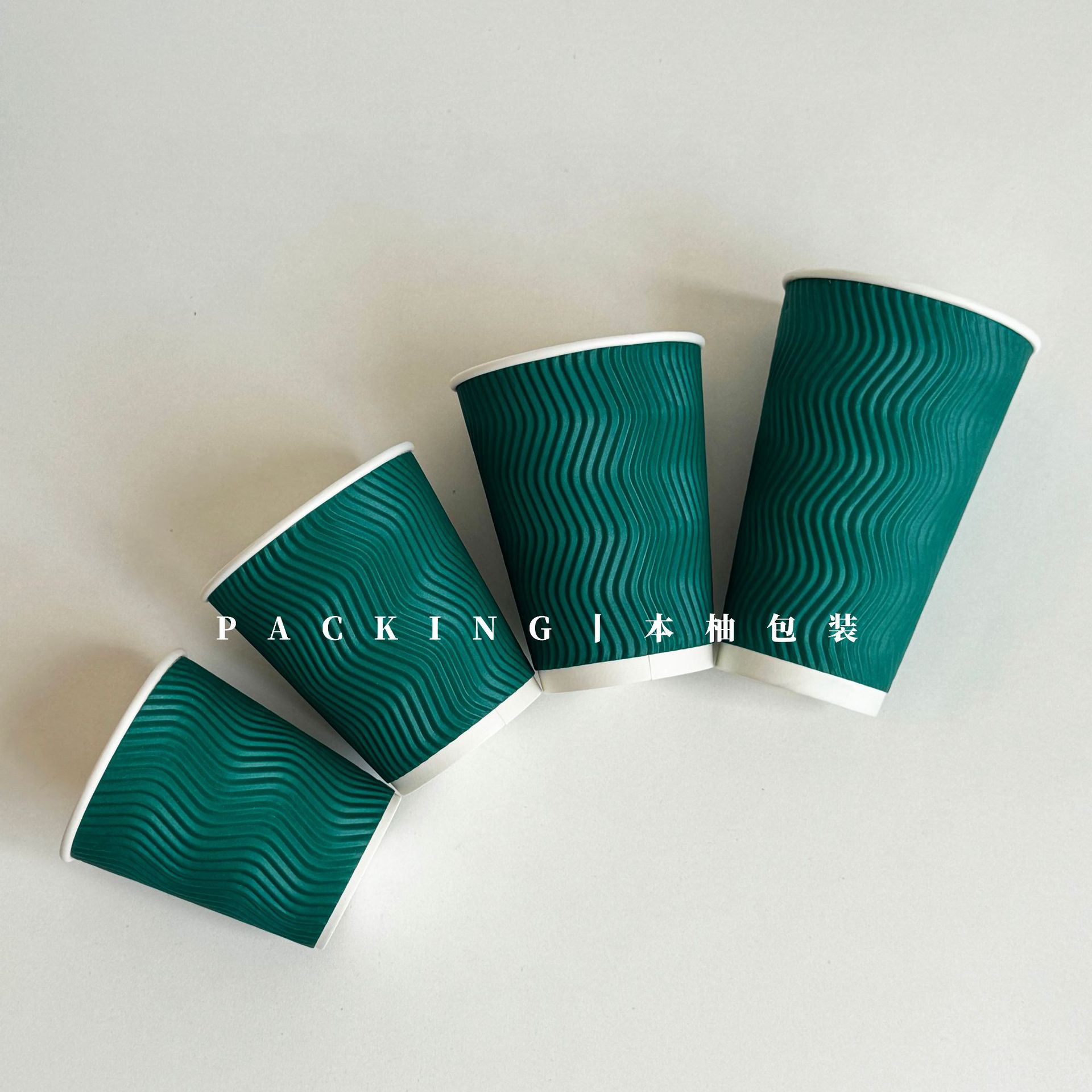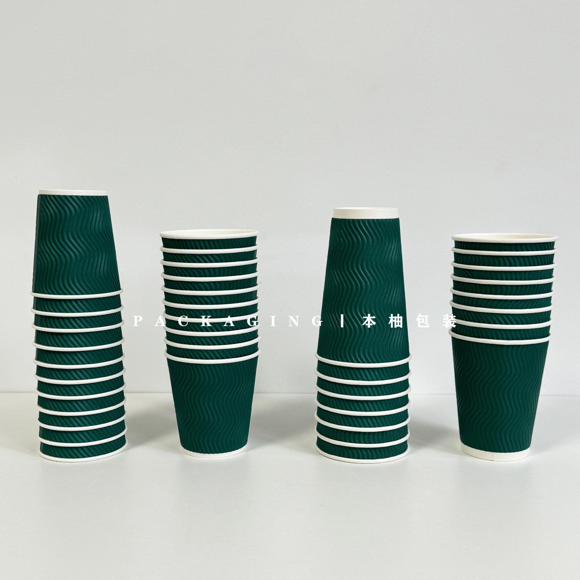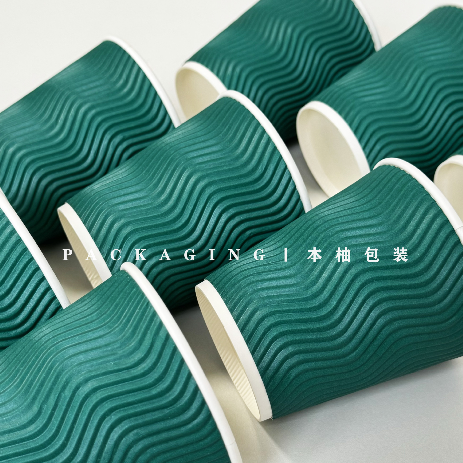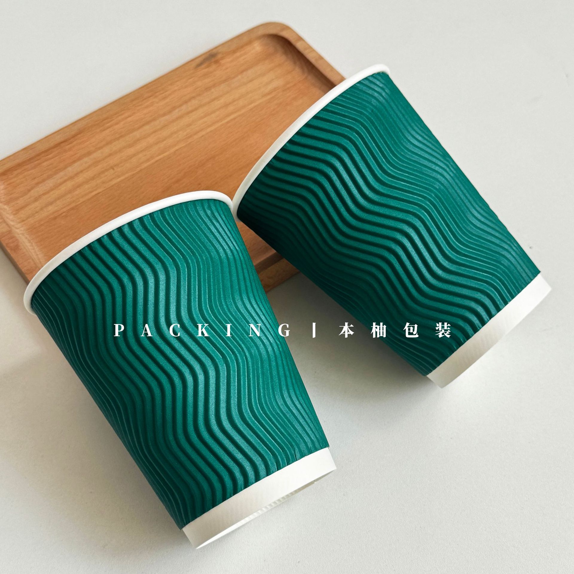 墨緑段ボール二重使い捨て紙コップ厚手断熱コーヒー家庭用テイクアウト防漏蓋付き印刷可能ロゴ