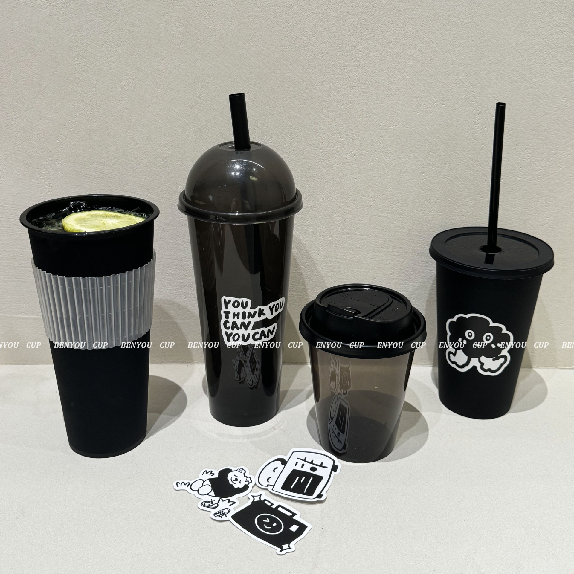 黒色フロスト射出カップ500/700mlコーヒーラテアメリカ真珠ミルクティー使い捨てプラスチックカップと蓋