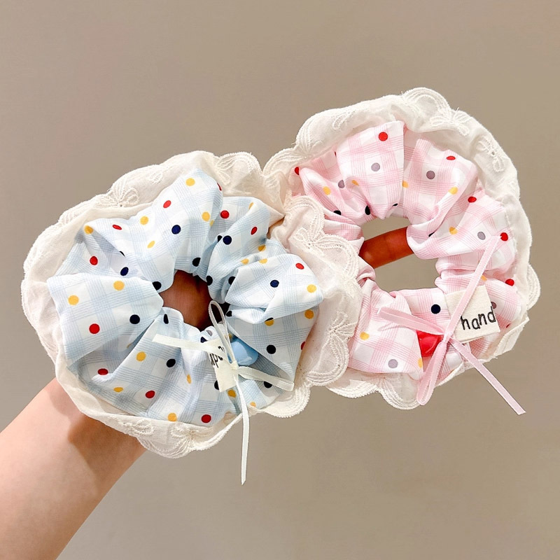 甜美波点爱心大肠发圈少女心蝴蝶结扎马尾头发绳蕾丝花边皮筋发饰