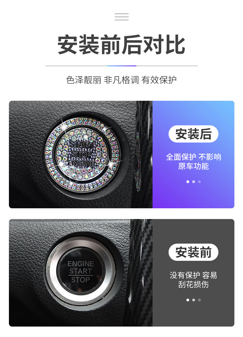 クリスタル点火リングを入れて、ワンキー起動ボタンを貼って、車の装飾品の自動車用品のダイヤモンドを貼ります。