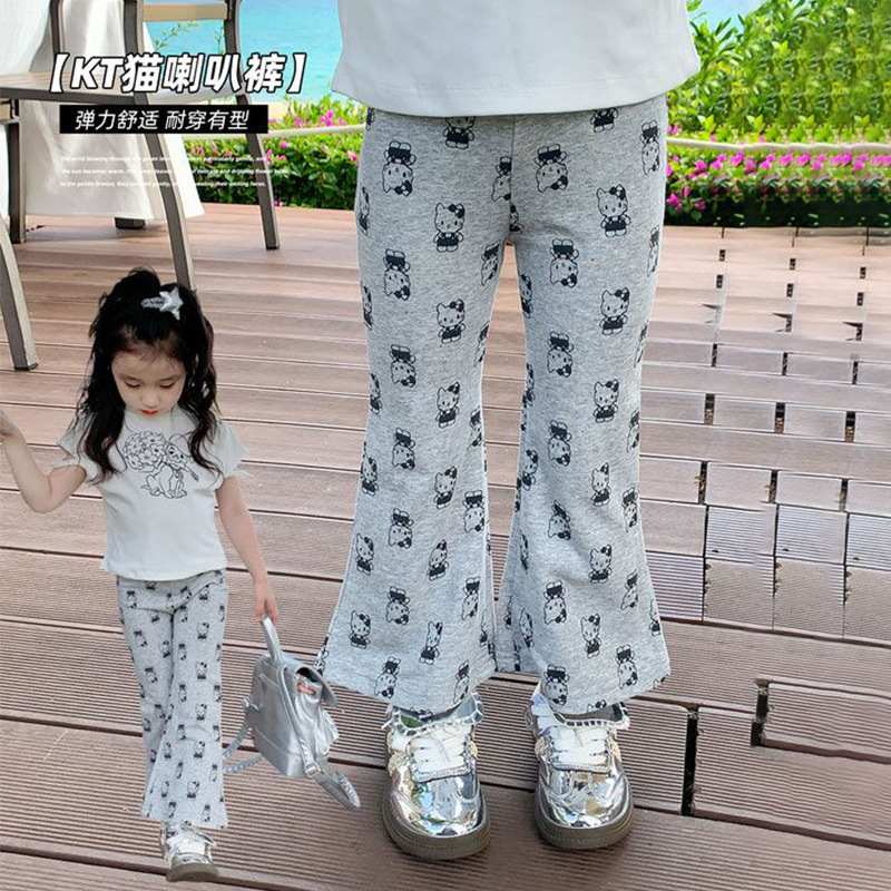 女の赤ちゃんのファッションの漫画のラッパのズボンの2024夏の氷の糸の薄い金の女の子の洋風の百合のカジュアルなズボンの卸売り