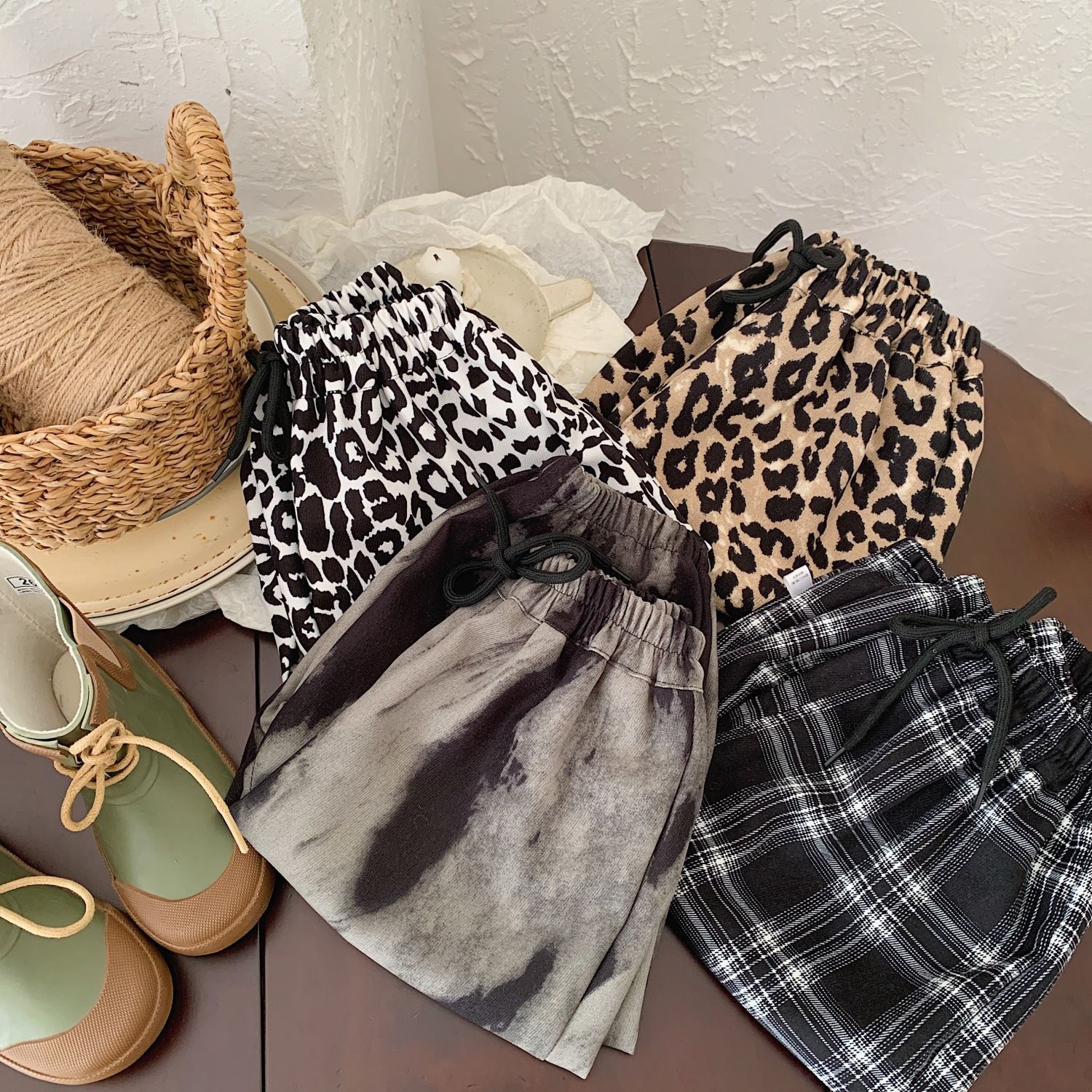 男女の洋気の韓国版のカジュアルな足首のズボンの氷の糸の薄い金の外はファッションの百合のヒョウの紋様の潮の子供のズボンの卸売りを着ます。