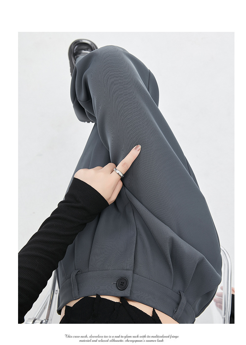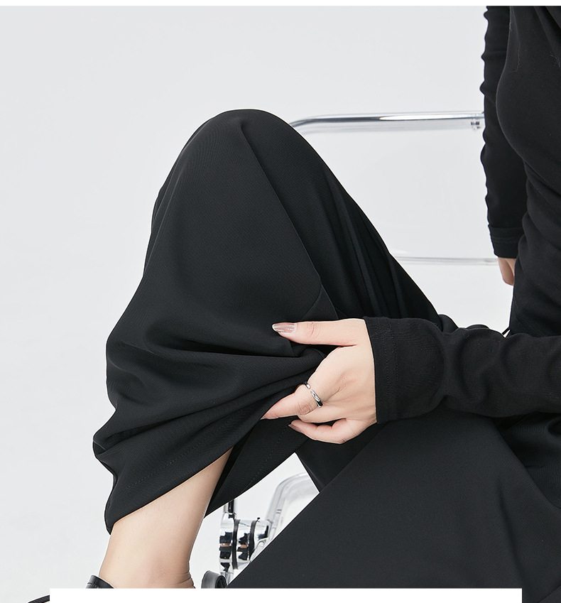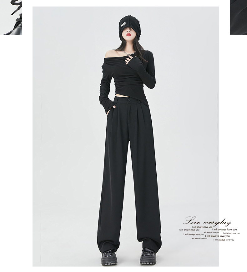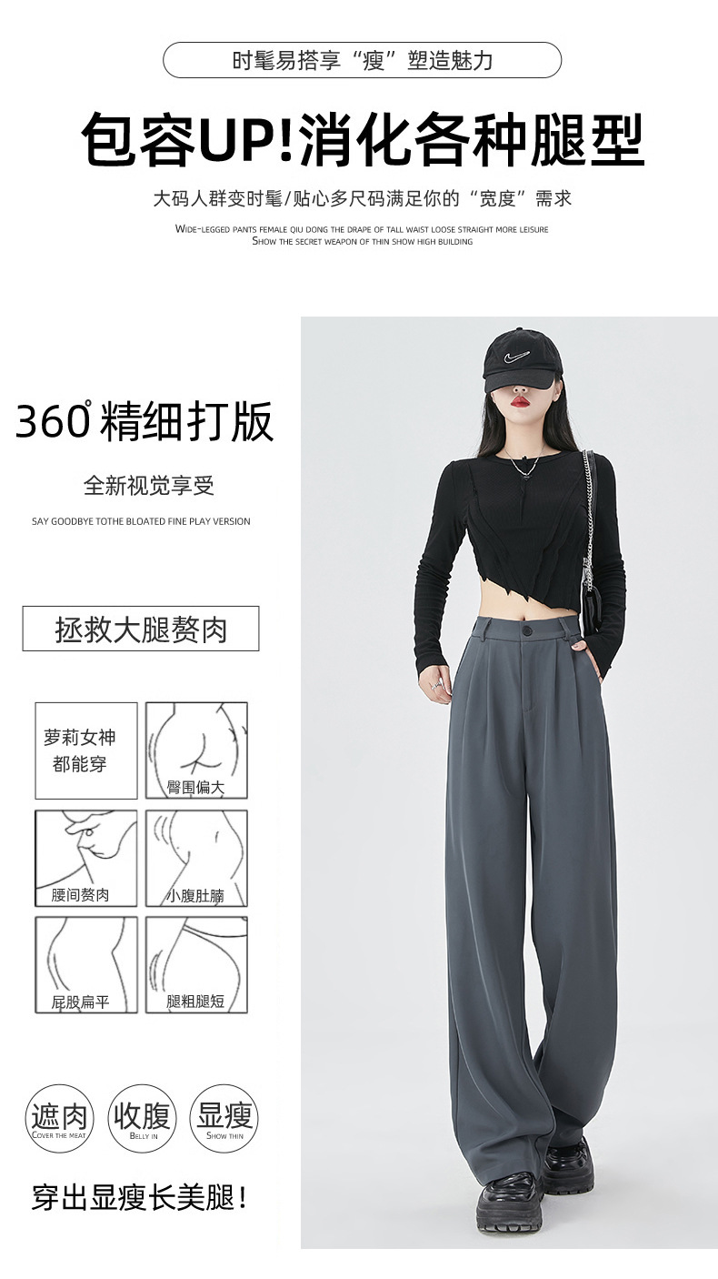 灰色美式V字低腰微喇西装裤女春秋夏季宽松垂感不贴腿拖地阔腿裤