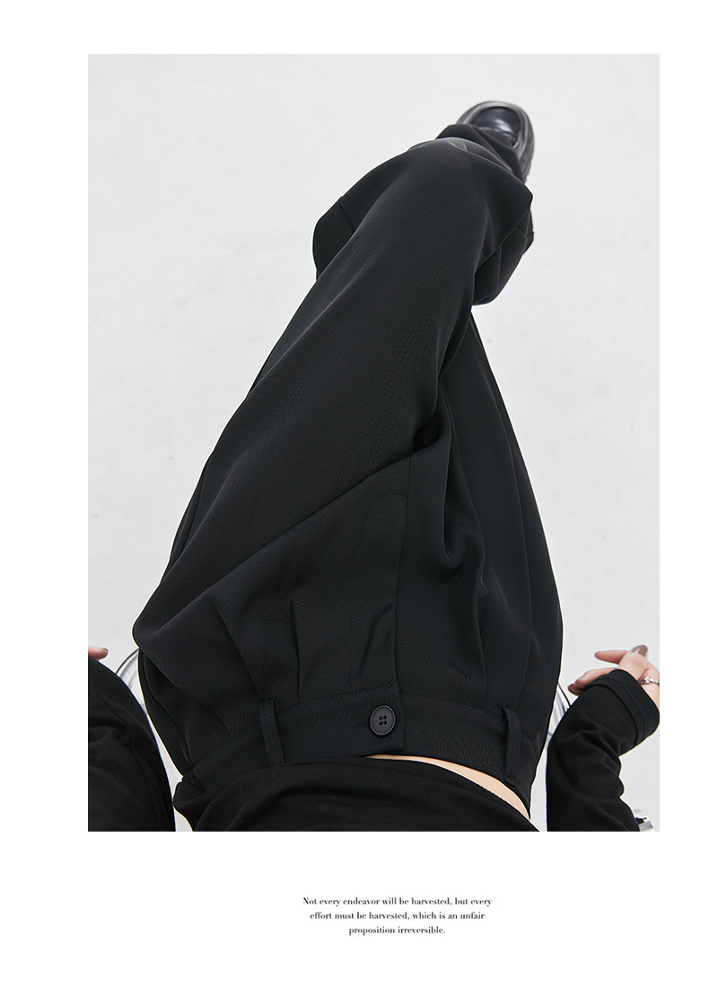 灰色のスーツのズボンの垂れ下がった感じの春秋の金は引きずって腹を収めてお尻を持ちます。
