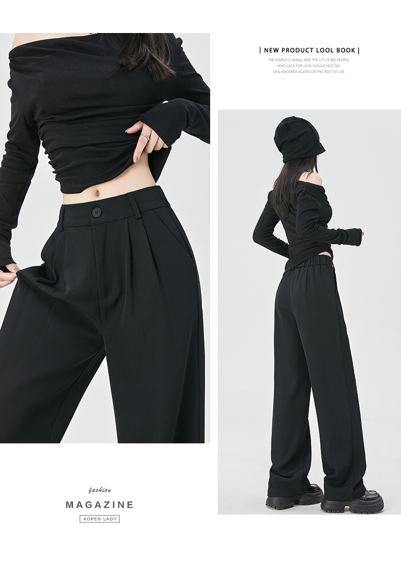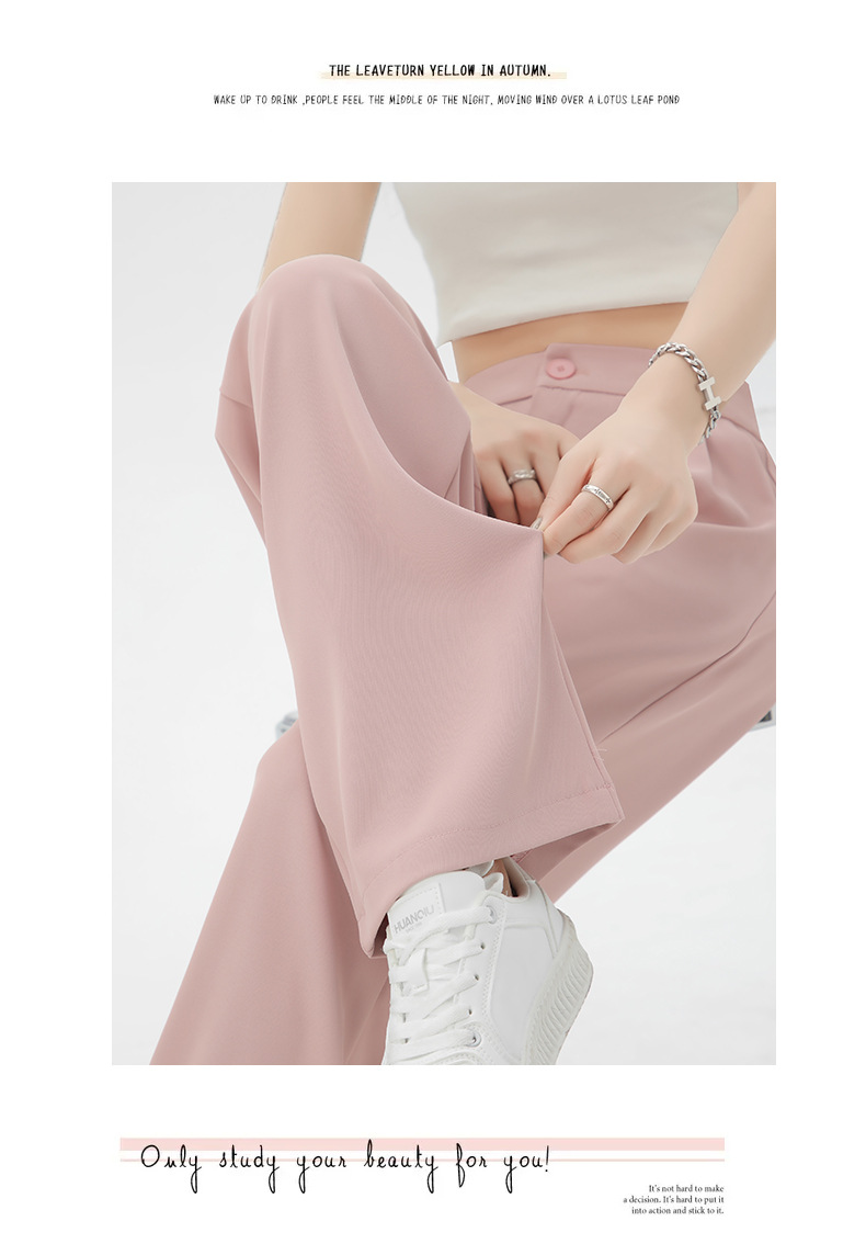 春と秋のもち米のズボンの秋冬のベルベットの広い足のズボンの女性のゆったりした高腰の垂れ下がった感じのまっすぐな筒の白いカジュアルなズボンの百合の狭い版