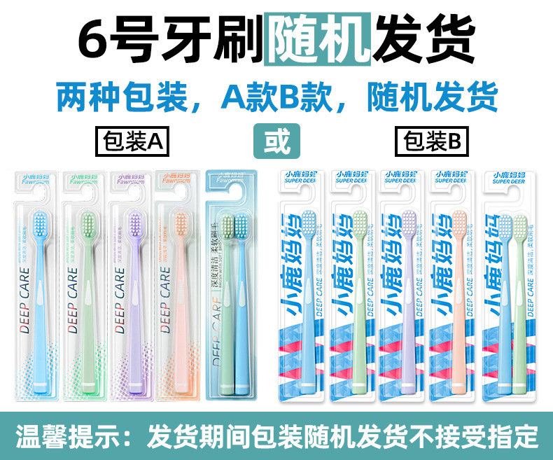 鹿のお母さんの柔らかい毛の歯ブラシの柔らかい細い糸の広い頭の歯ブラシの家庭は独立して深層の清潔な成人の歯ブラシを詰めます。