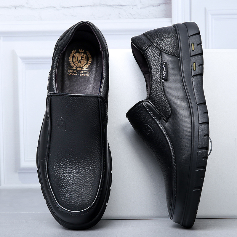 本革牛革新型カジュアル革靴男性お父さん靴本革カバー足滑り止めソフト底革靴男性源工場