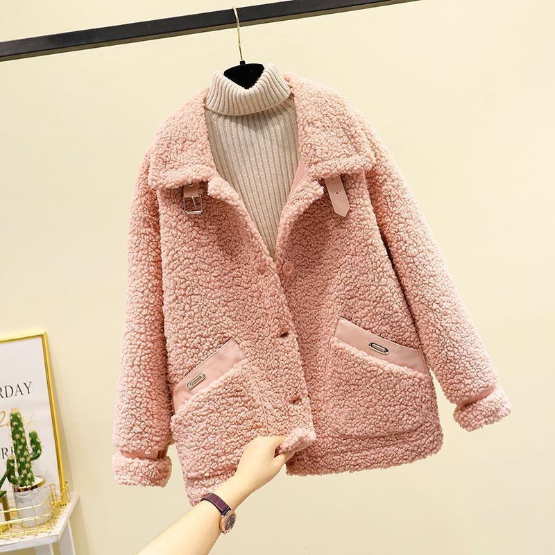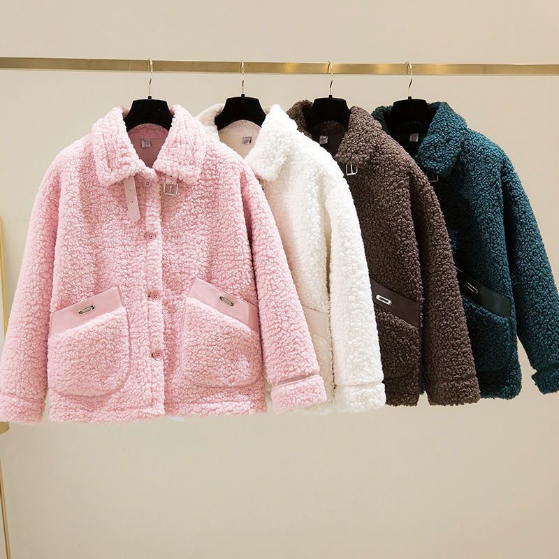(4色mから4xl) 毛皮一体コート女2023秋冬羊小毛コート韓国版ゆるいコート