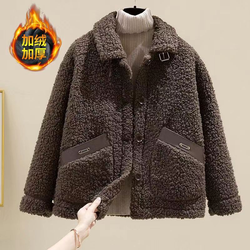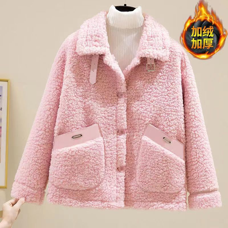 仿羊羔绒外套女2026秋冬颗粒绒加绒加厚小个子大宽松保暖大衣外贸