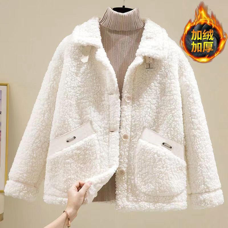 2025年冬季新款羊羔毛外套女皮毛一体羊羔绒百搭厚毛毛羊羔绒大衣