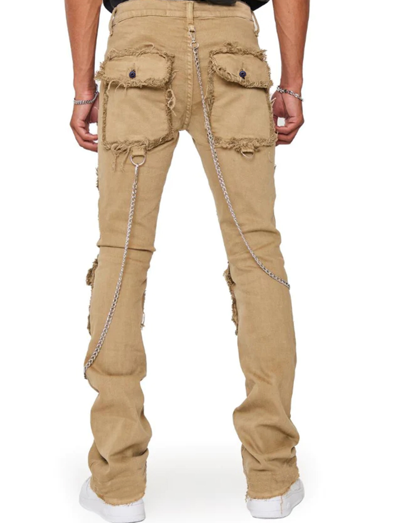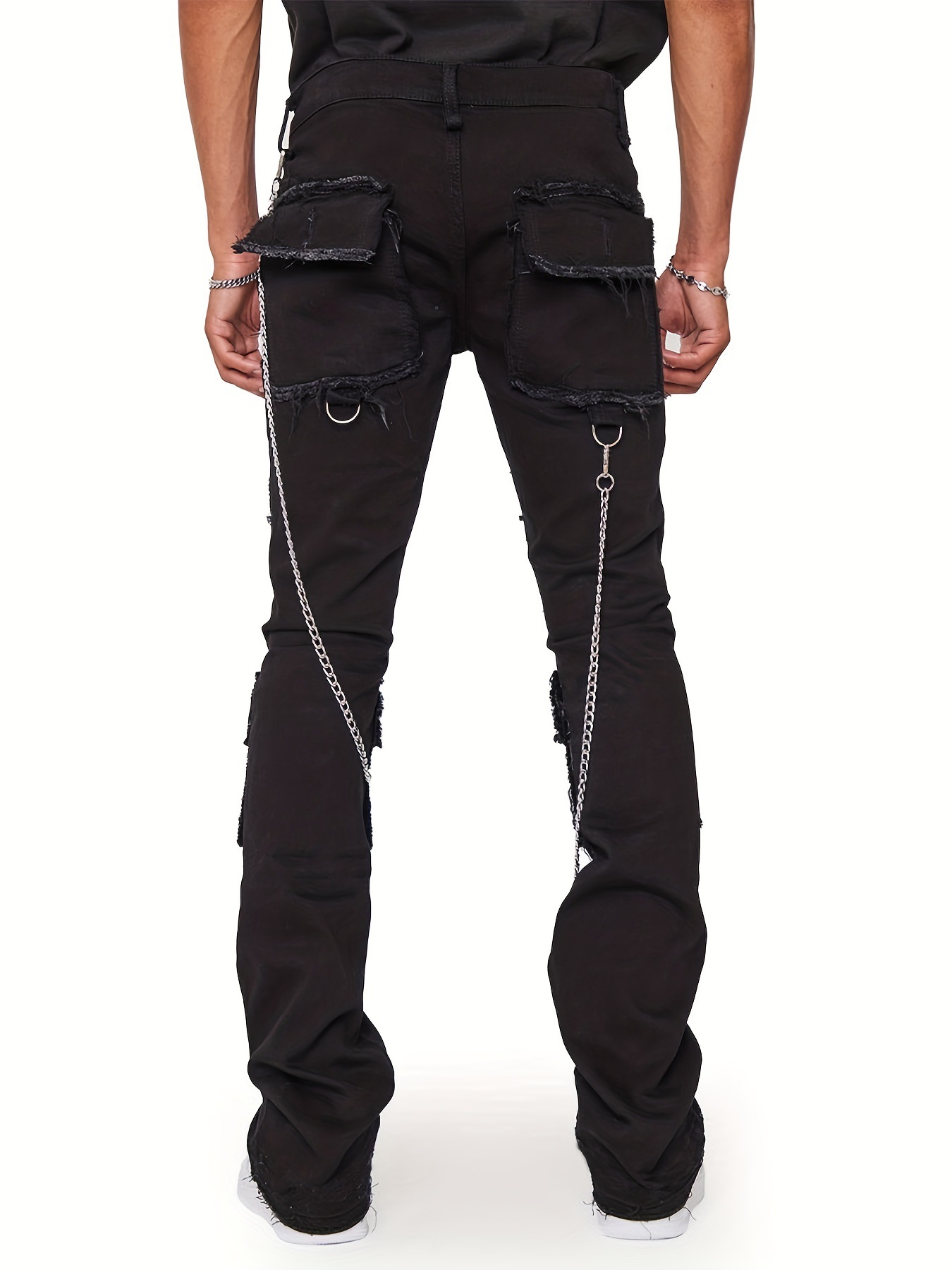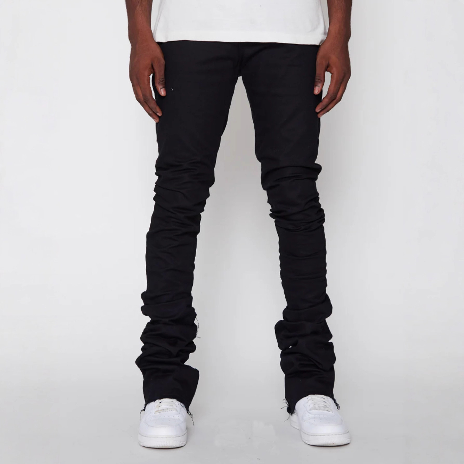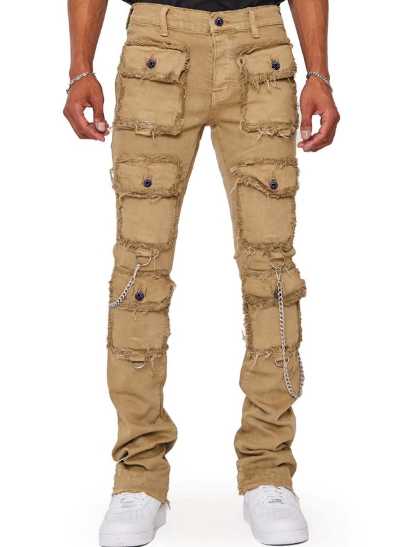 跨境新款男士牛仔直筒裤欧美街头时尚ins爆款弹力贴布牛仔堆叠裤