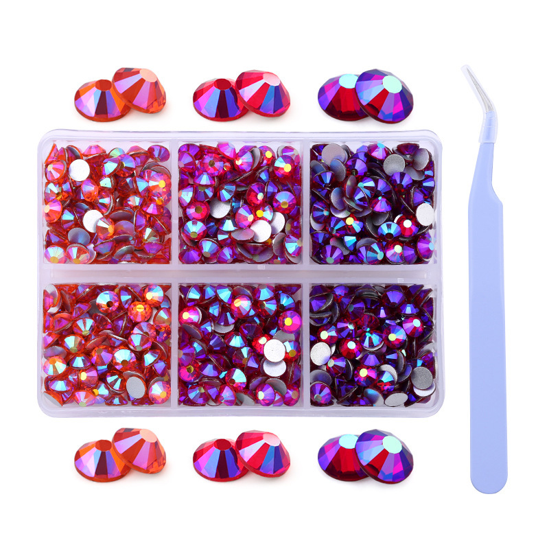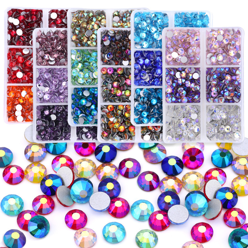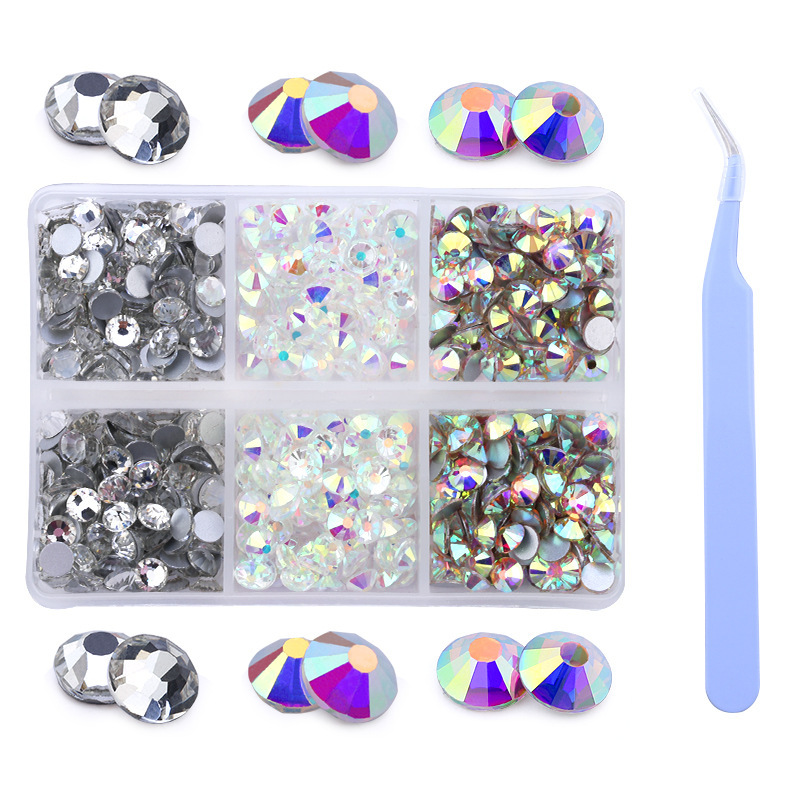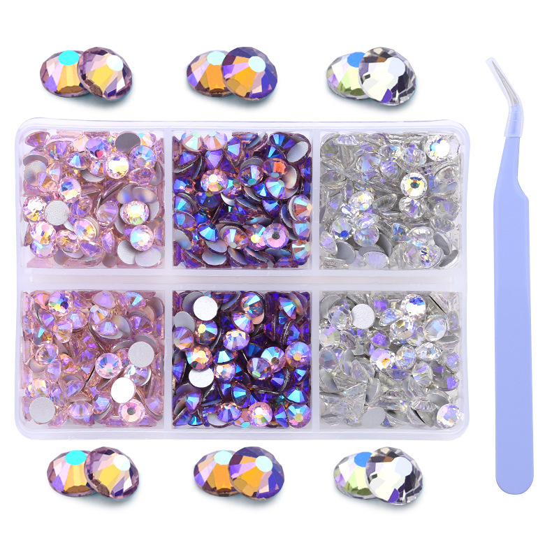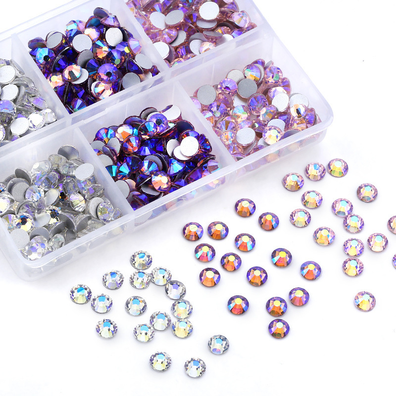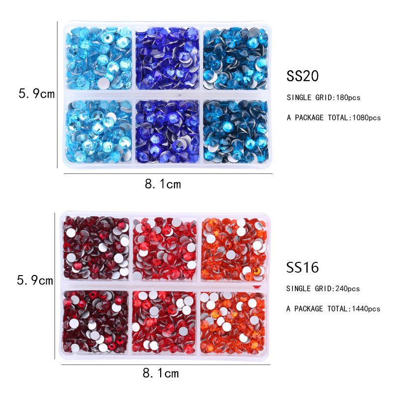 Amazonの新製品混合6グリッドラインストーンセットabシリーズSS16 SS20ネイルアートラインストーン平底ダイヤモンドボックス