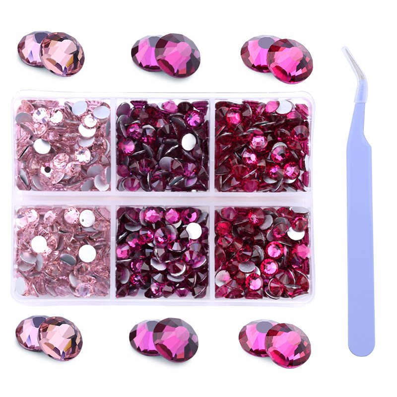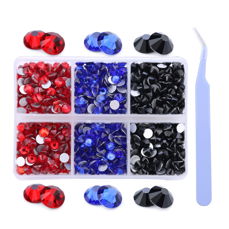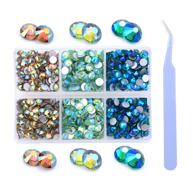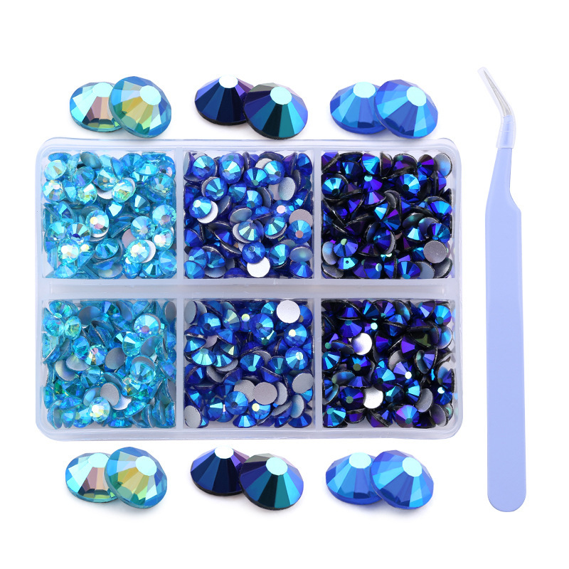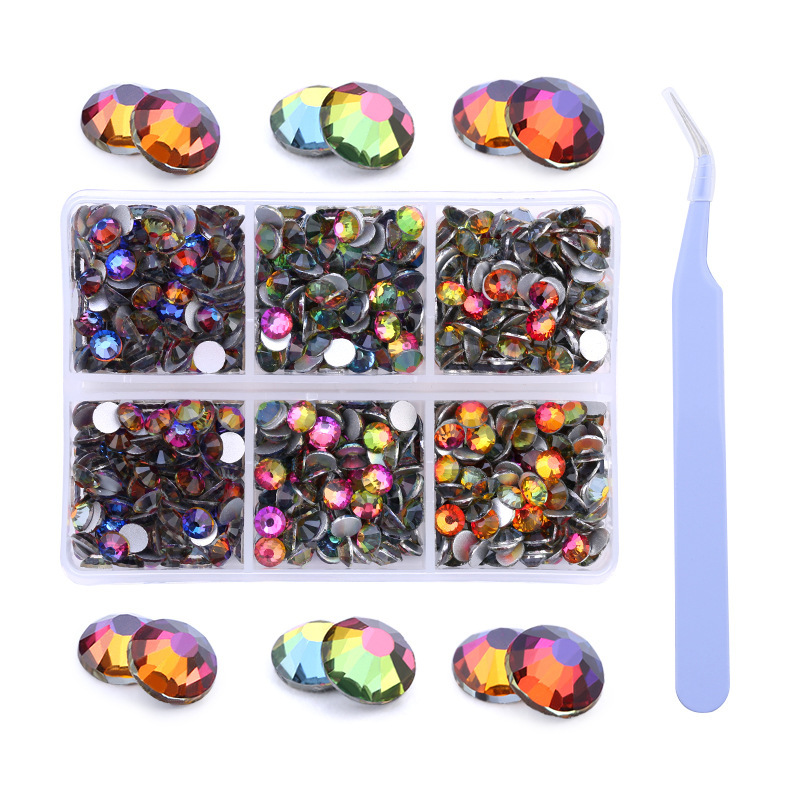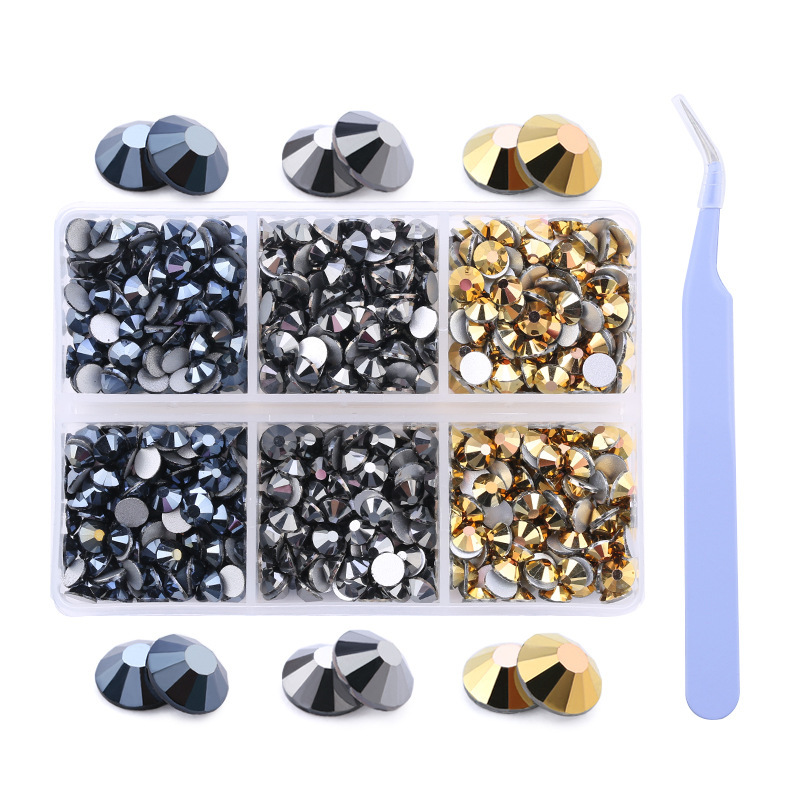 Amazonの新製品混合6グリッドラインストーンセットabシリーズSS16 SS20ネイルアートラインストーン平底ダイヤモンドボックス
