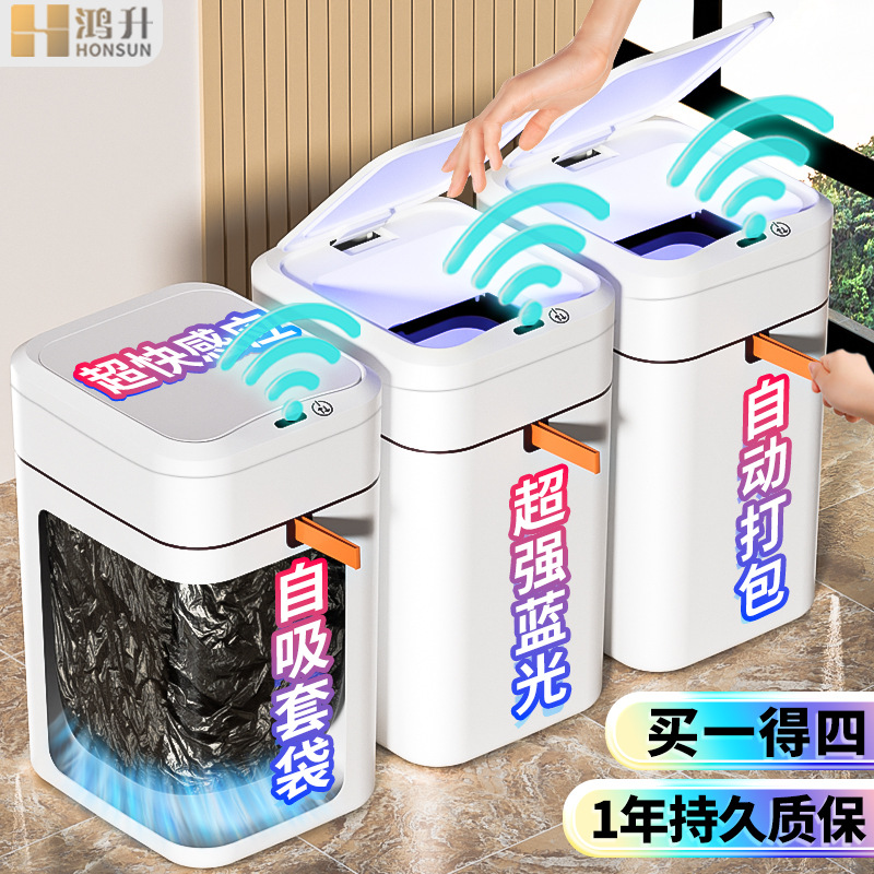 智能感应垃圾桶跨境新款全自动吸附蓝光打包家用客厅厨房卧室带盖