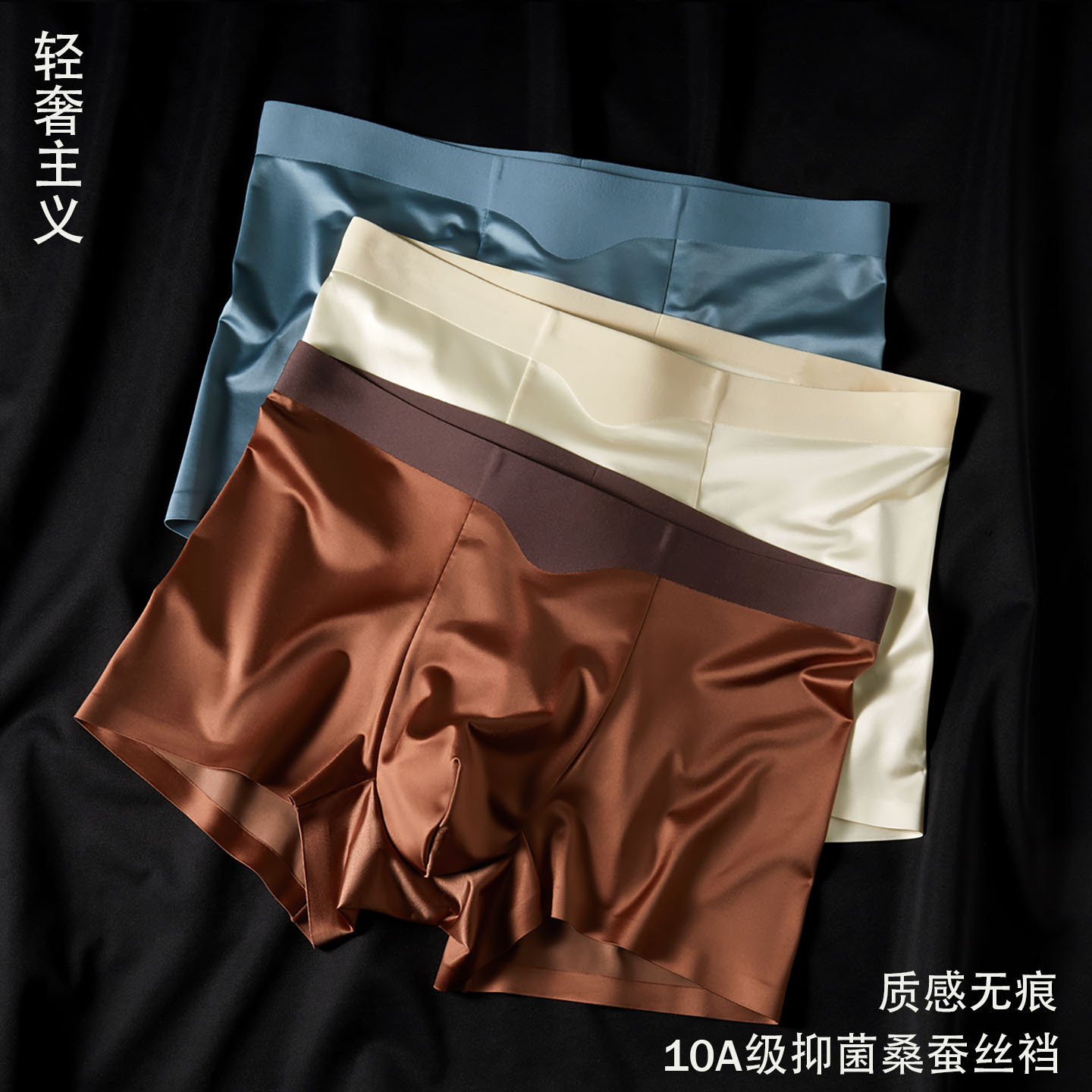 ハイエンドサテンシームレスアイスシルクメンズボクサーブリーフファッショナブルで軽い高級感10A抗菌マルベリーシルクボトムクロッチメンズ下着