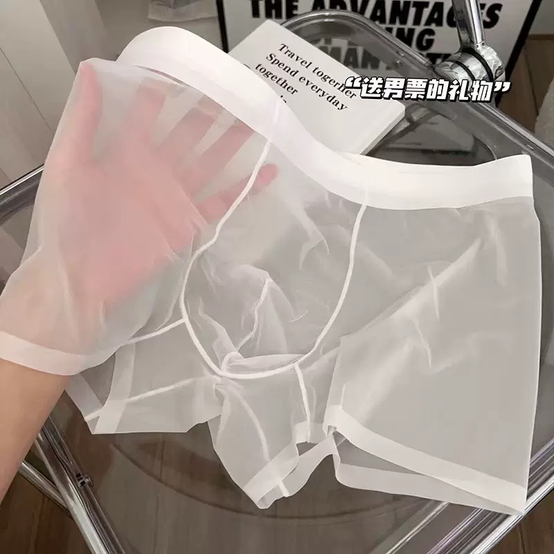 アイスシルクの新しいシームレスな完全透明高透明男性下着ナイロンクールボクサーブリーフ夏の極薄男性ボクサーブリーフ