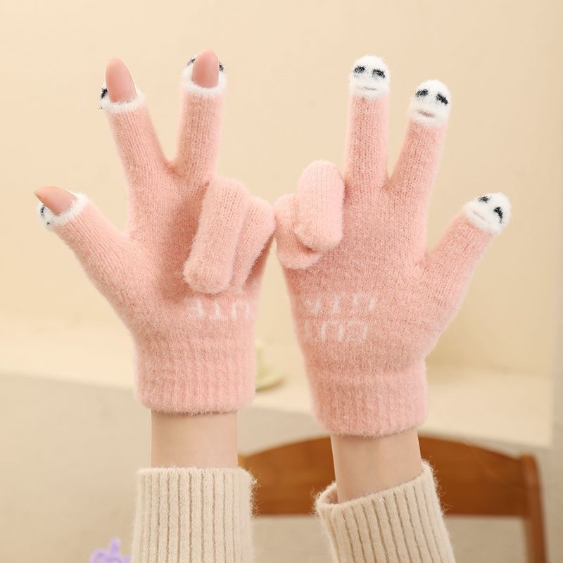 秋冬ニット手袋、豆豆魚タッチスクリーン対応、可愛い学生用筆記用手袋、豆豆魚ゲーム用、保温、三本指露出手袋