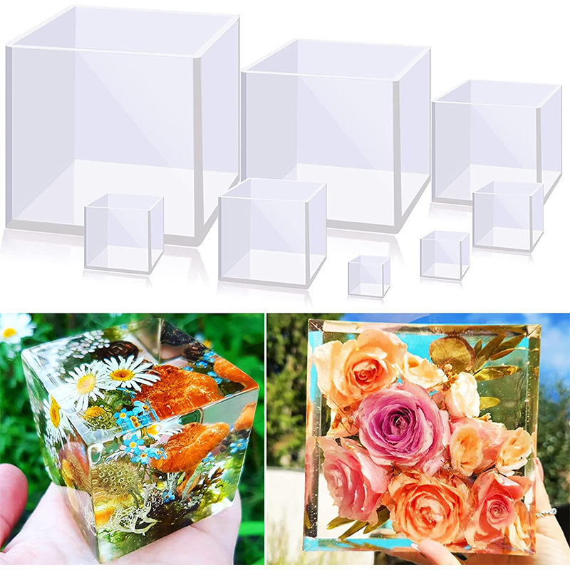 クリスタルエポキシ樹脂キューブドライフラワー標本置物、様々なサイズの立方体シリコンモールドケーキ