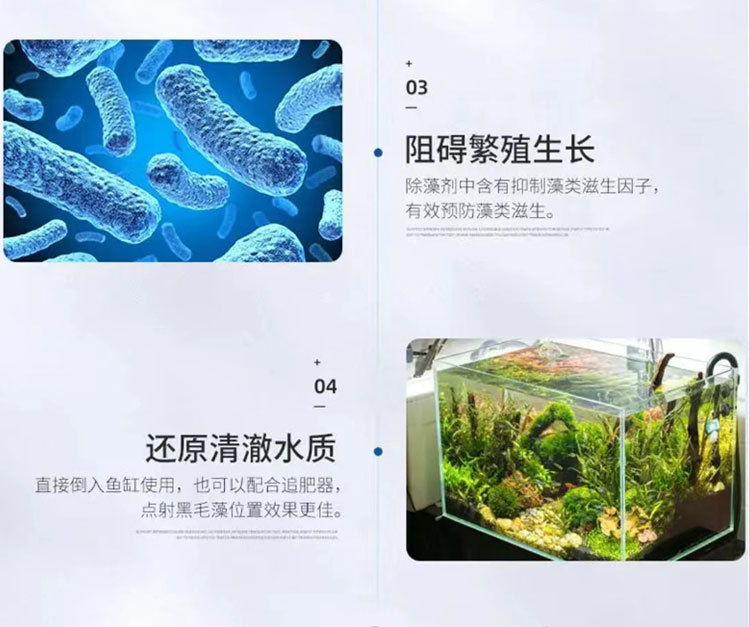 再ペット水槽藻類除去剤、黒毛藻、水藻、コケ、緑藻除去剤、水槽浄化硝化菌