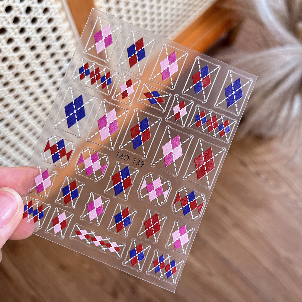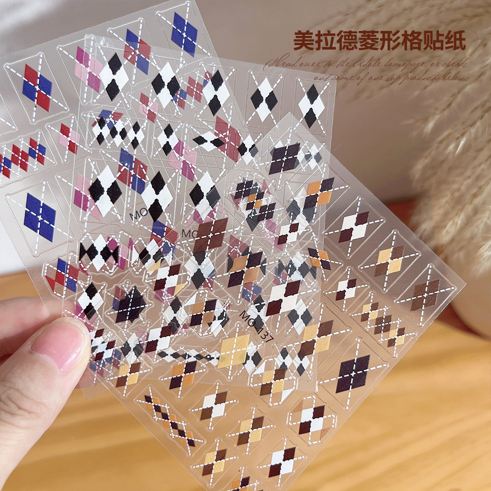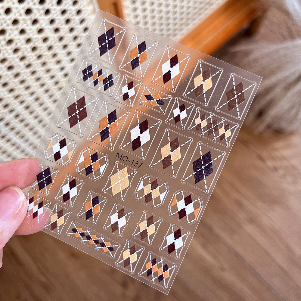 秋冬のひし形の格子縞のネイルシールの浮き彫りの薄い強靭な色の箔押しの幾何学の格子縞の簡単なバックゴムの爪のステッカー