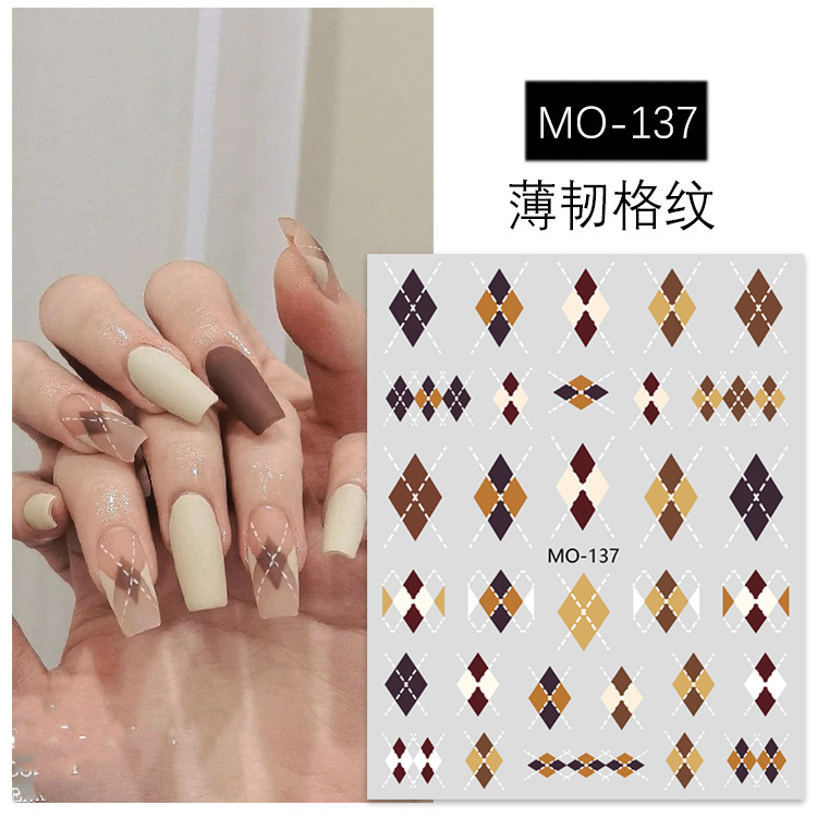 秋冬キャラメル色菱形ネイルシール茶色菱格箔押しかわいいネイルシール美甲店専用