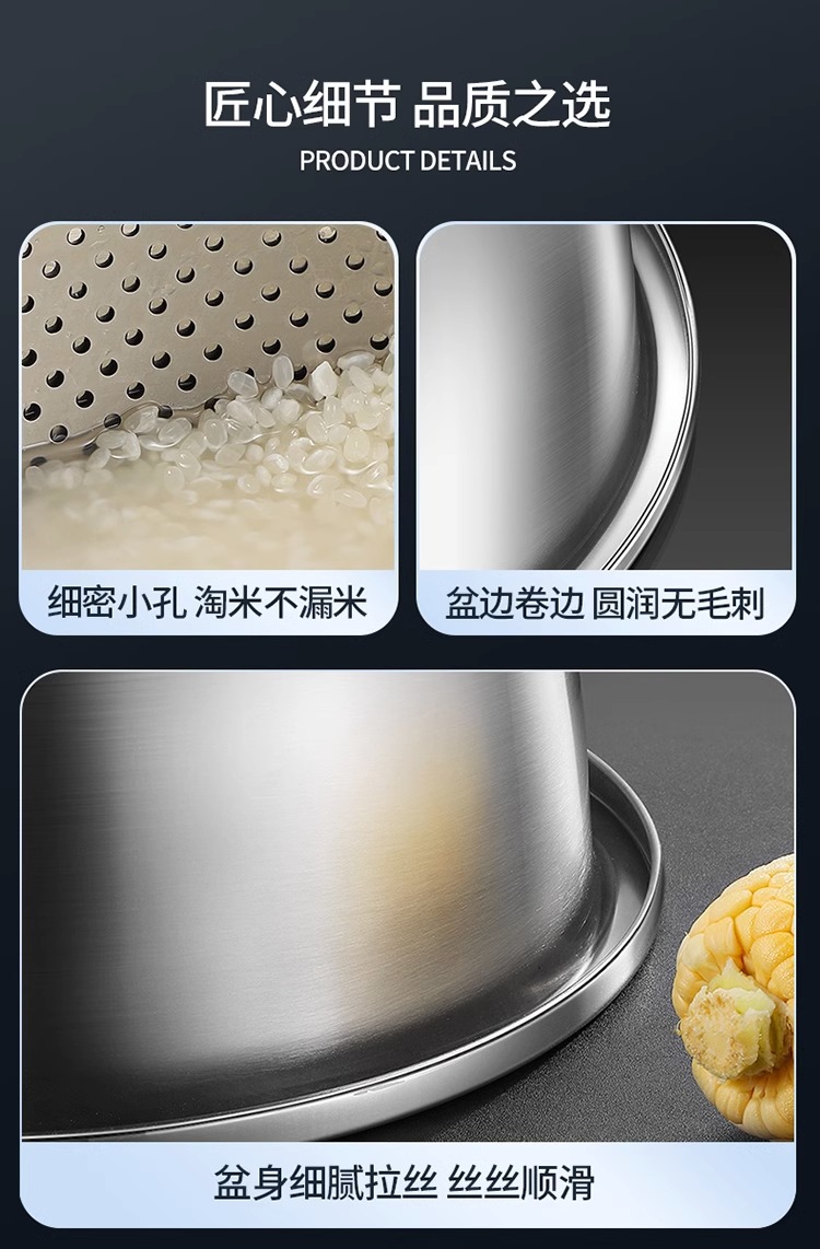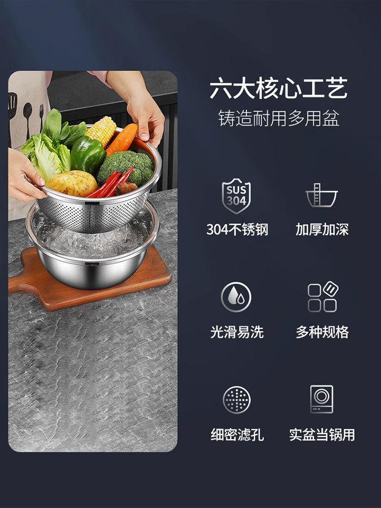 304ステンレス盆セット円形味斗家庭用料理盆スープ盆果物盆米盆と麺洗浄盆