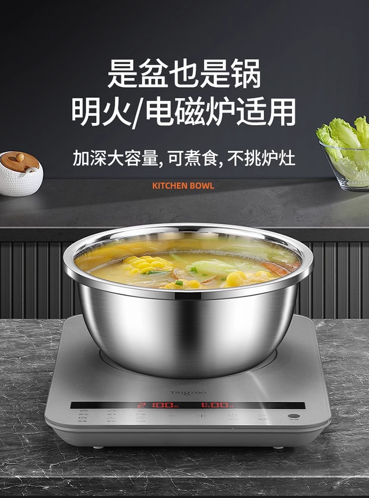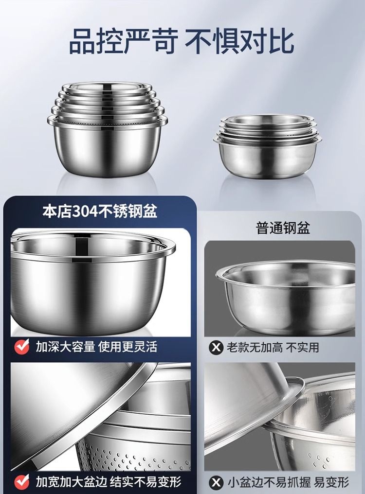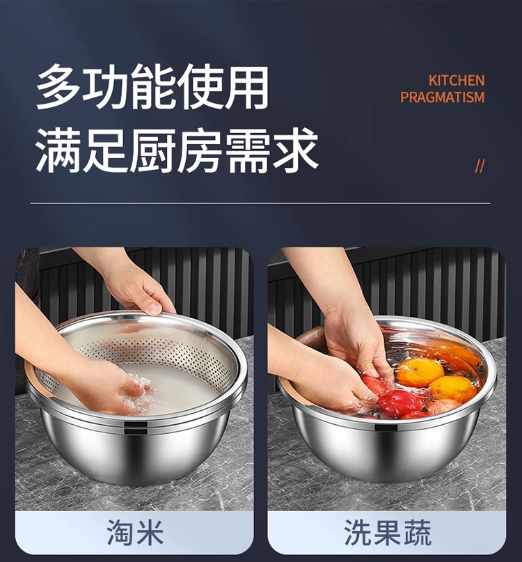 跨境不锈钢和面盆商用烘培打蛋盆多功能加深不粘盆网红洗菜沙拉盆