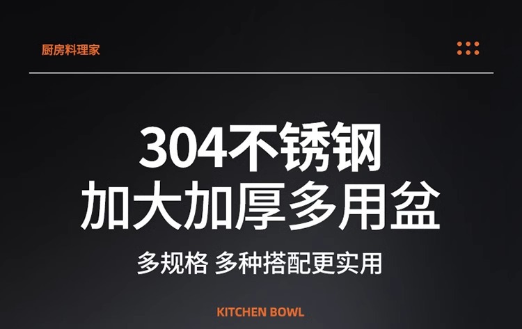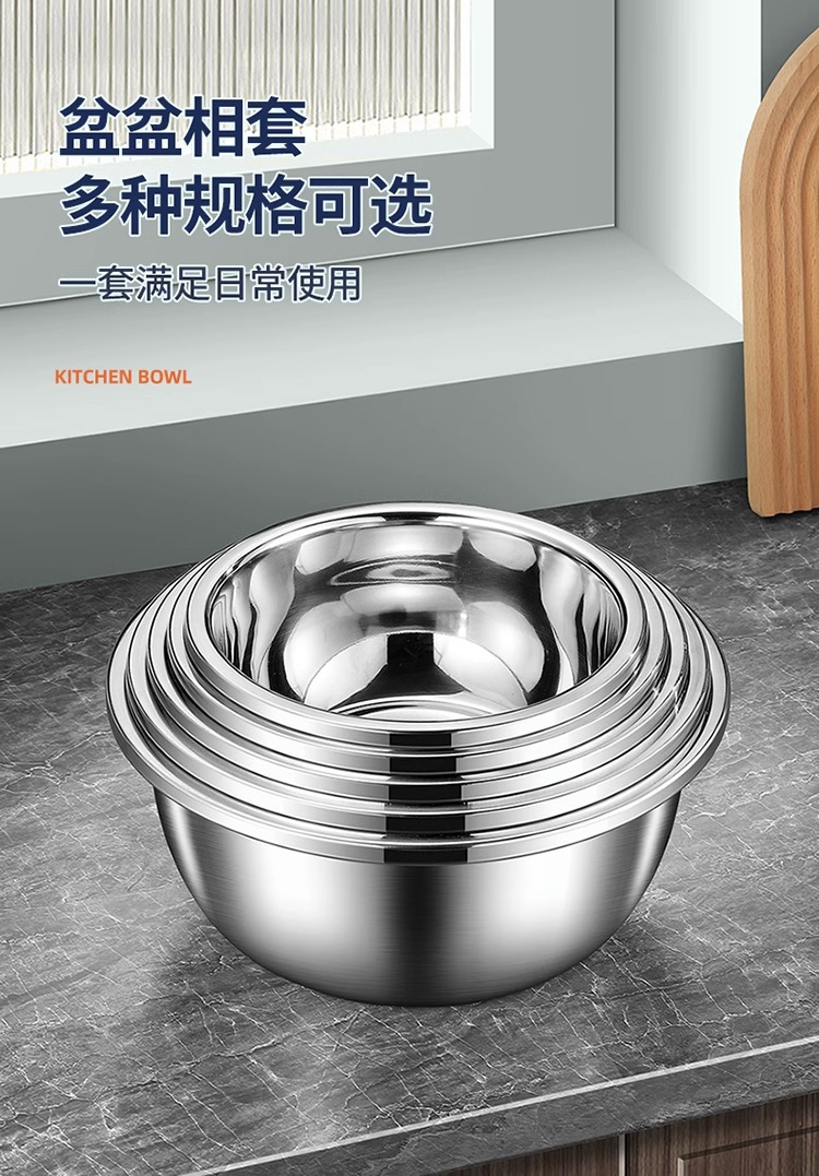 304不锈钢盆加厚圆形家用汤盆打蛋盆面盆食品级调料缸洗菜盆厨房