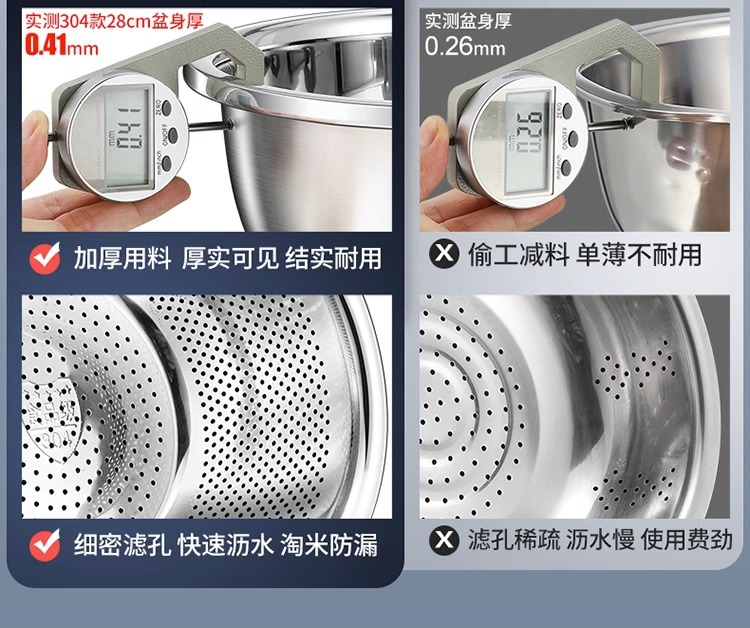 食品級304ステンレス盆は厚くて、調味料シリンダーのオムライスボウルと洗面器の野菜を洗って米を研いで洗面器を漏らす