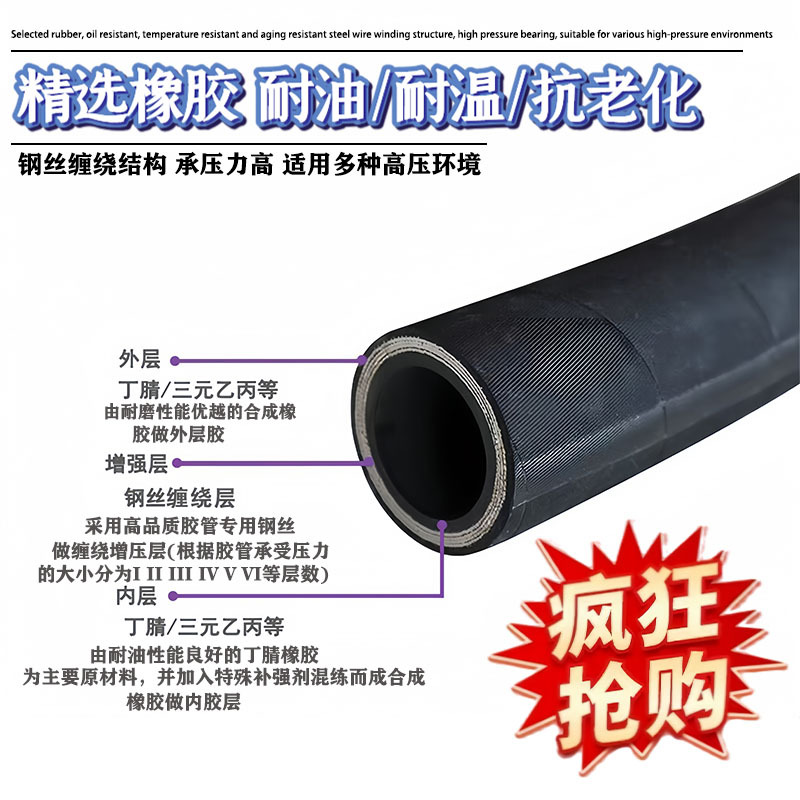 ねじ高圧編組ゴム管耐摩耗防爆耐油過ガス水管メーカー鉱用編組油圧ゴム管