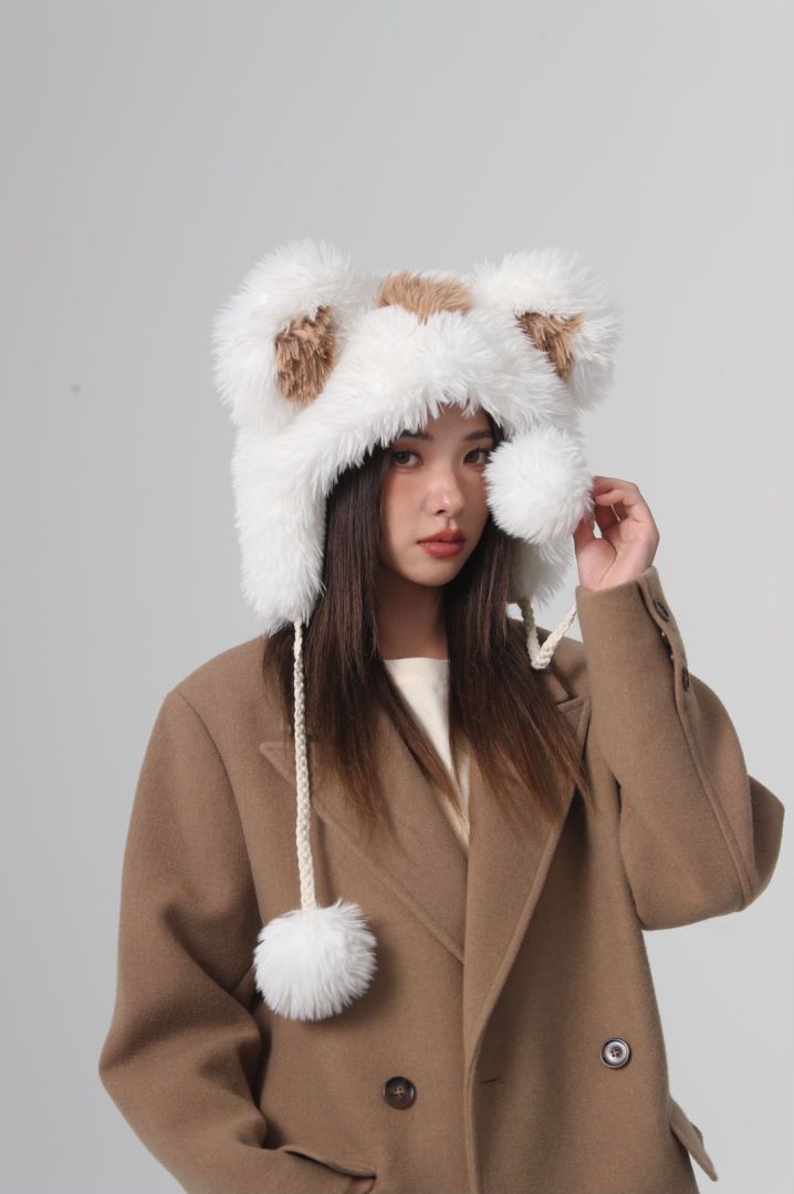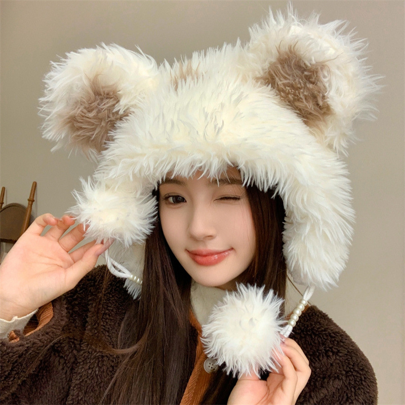 新しい帽子の女性の秋冬のかわいい甘い熊の耳の毛の絨毛の帽子の防風の保温のニットの耳の帽子の韓国版