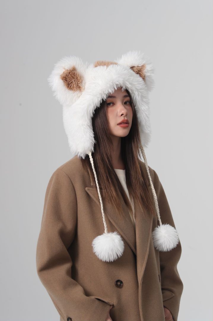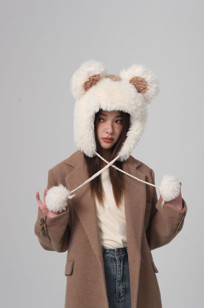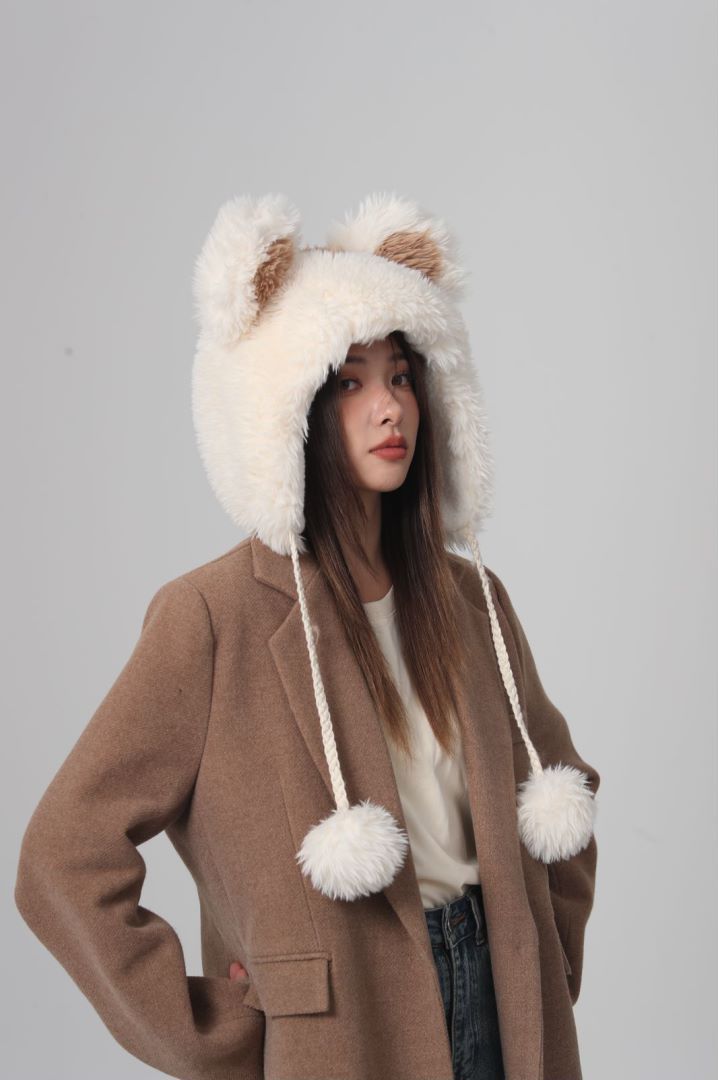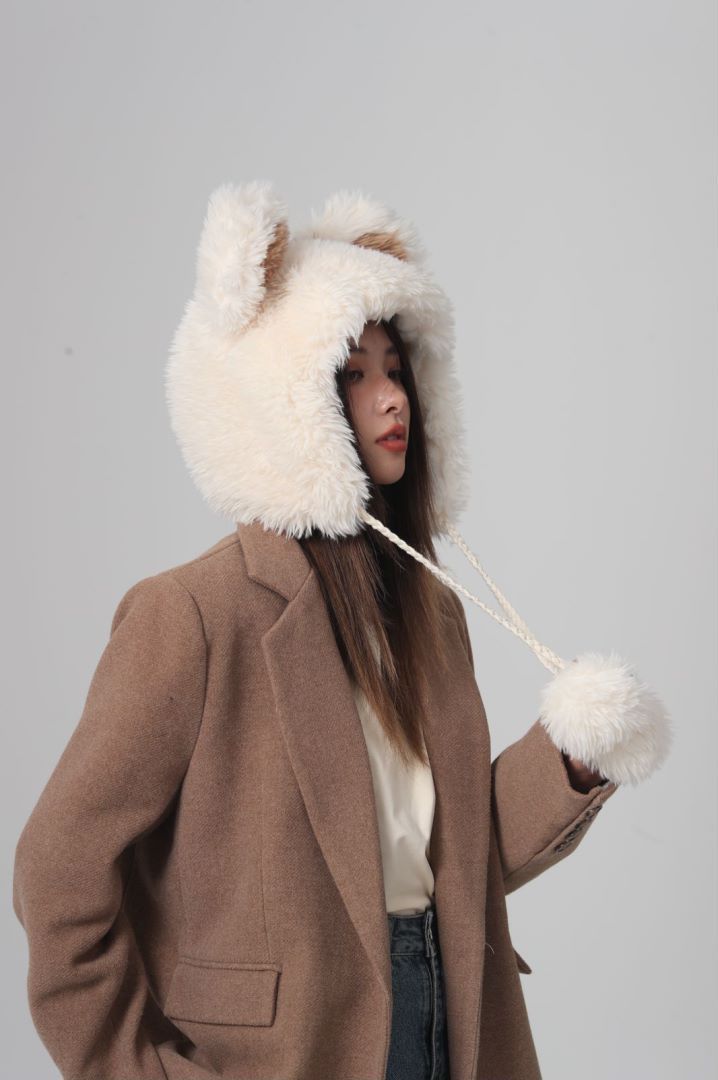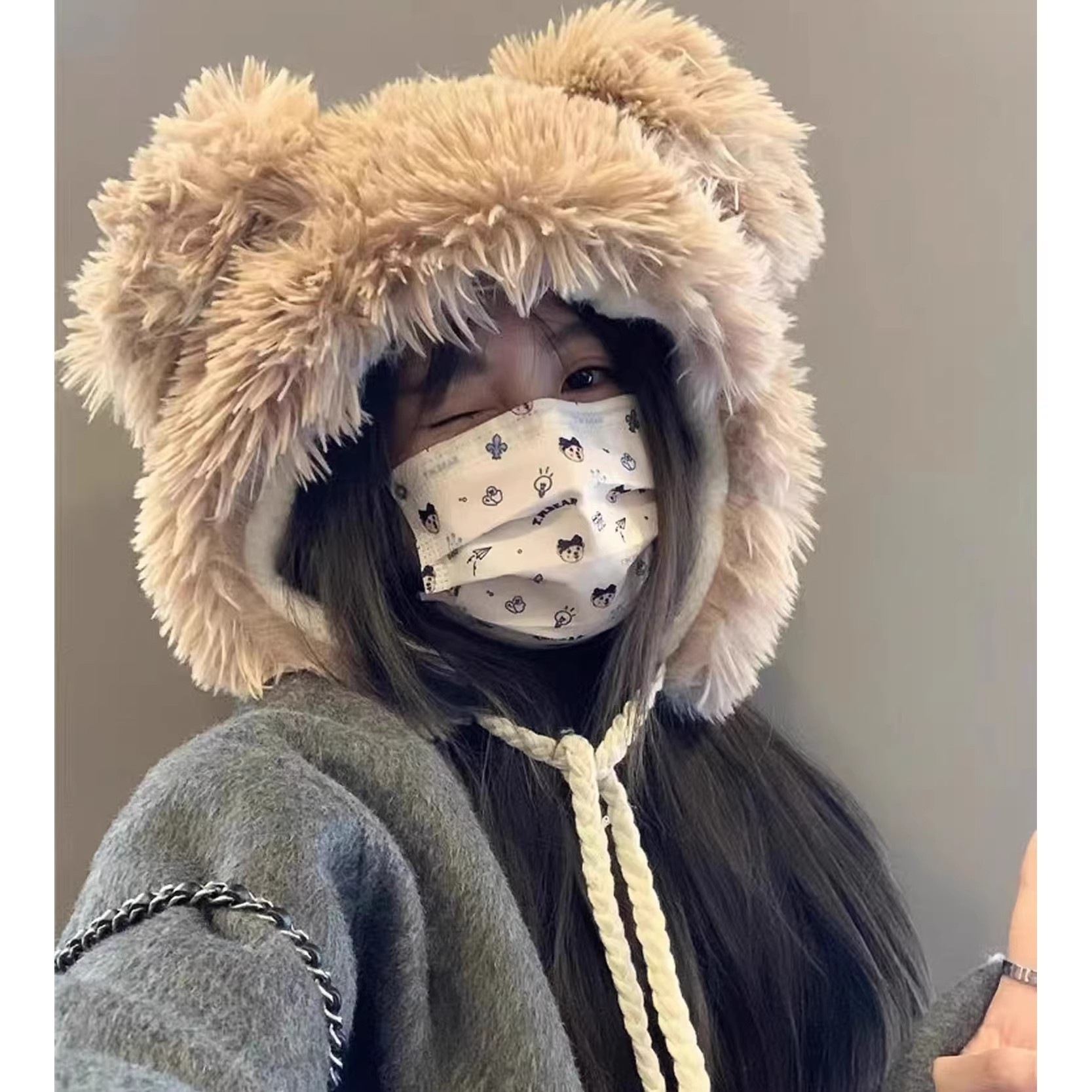 かわいいベアー帽子マフラー一体女性冬耳雷鋒帽ぬいぐるみ自転車保温スキー