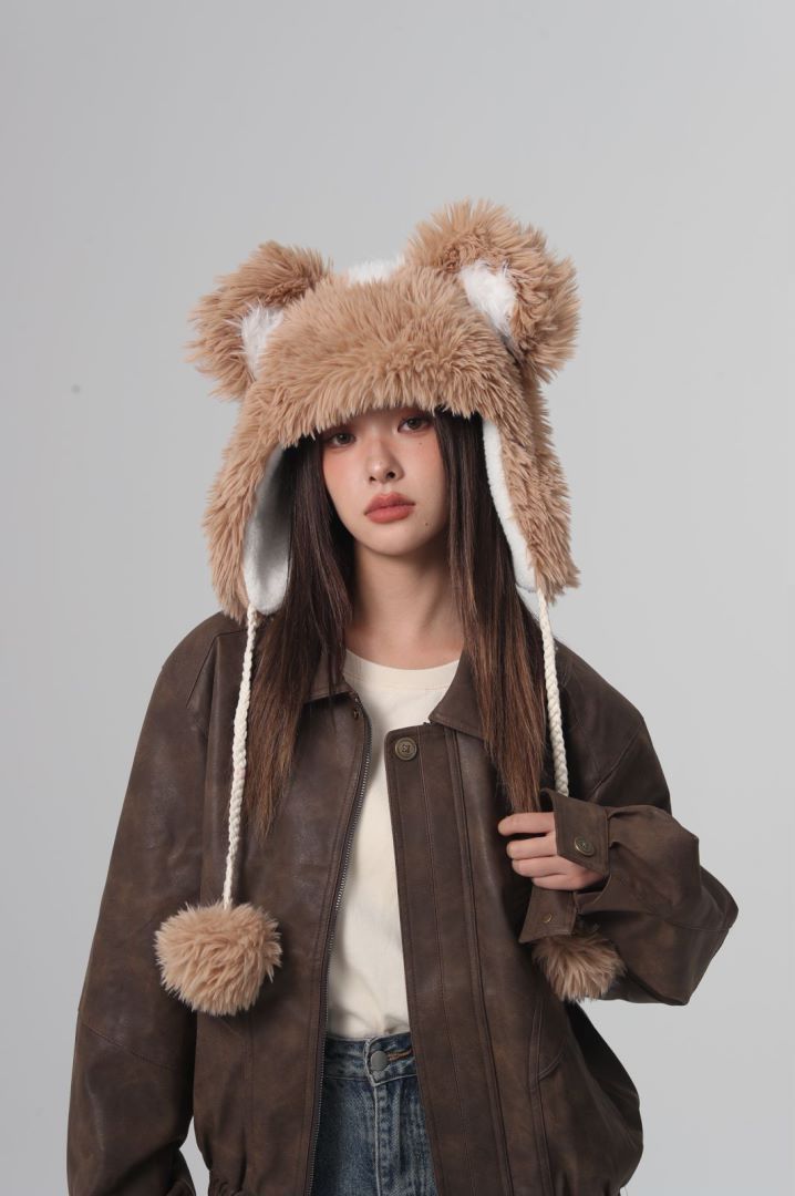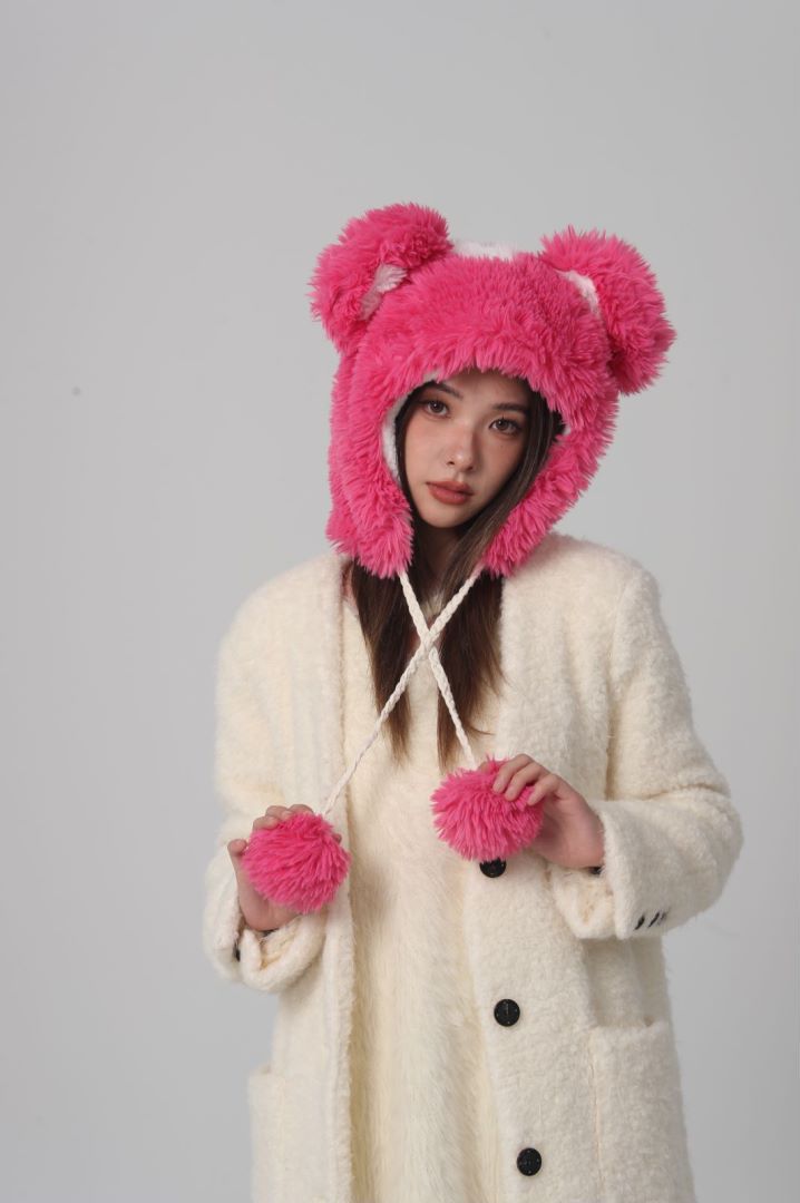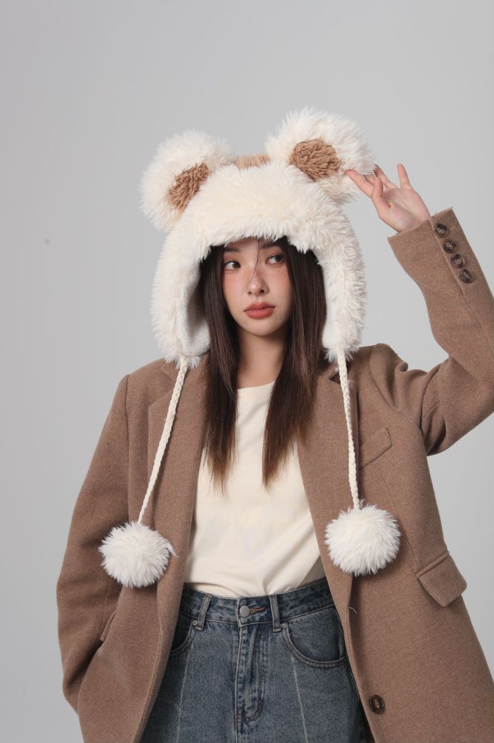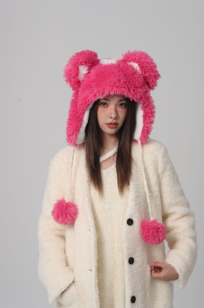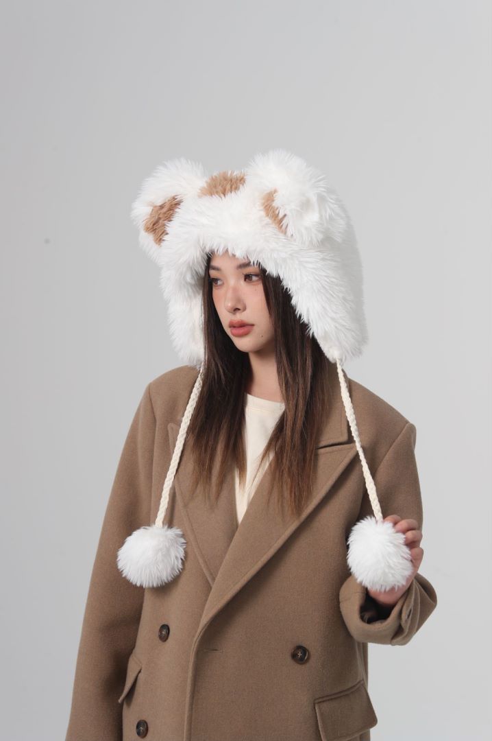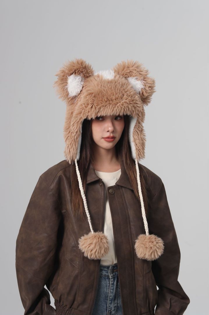 かわいいベアー帽子マフラー一体女性冬耳雷鋒帽ぬいぐるみ自転車保温スキー