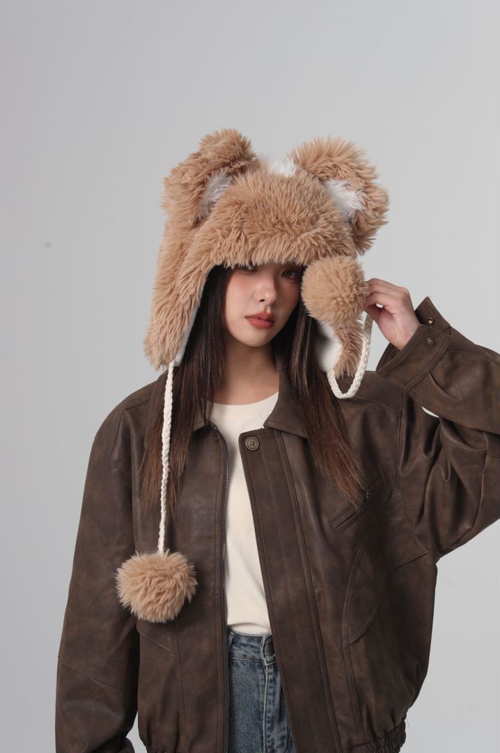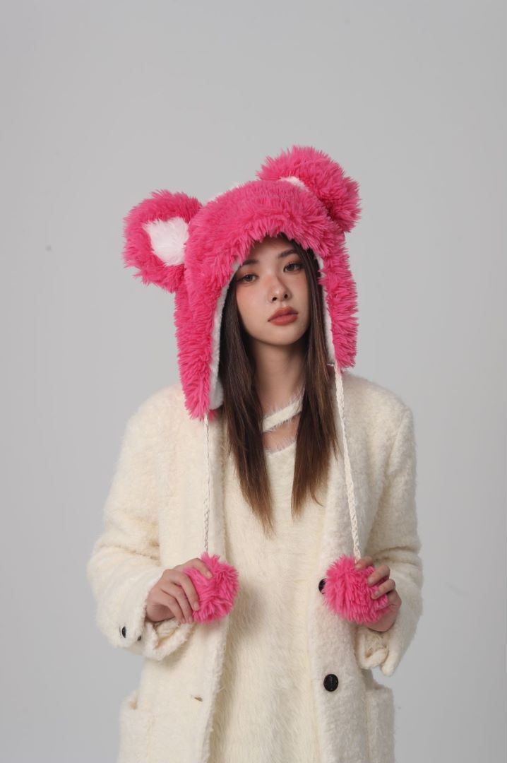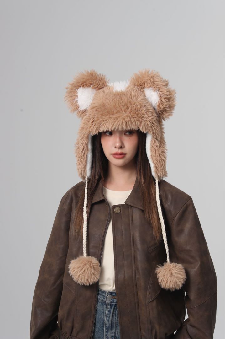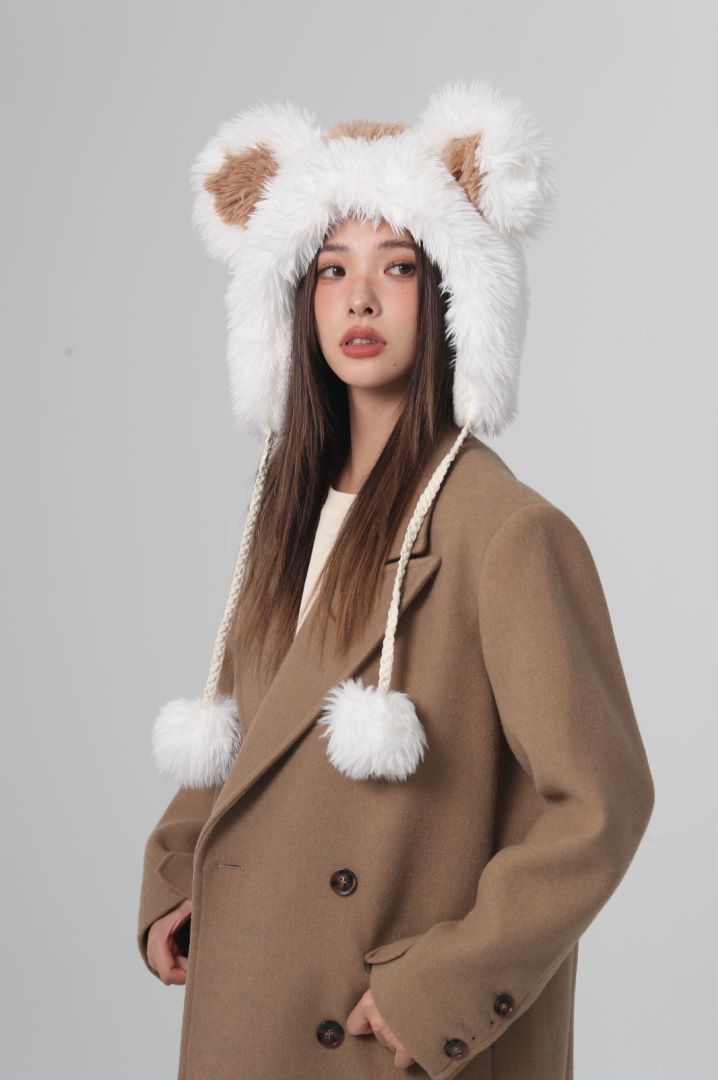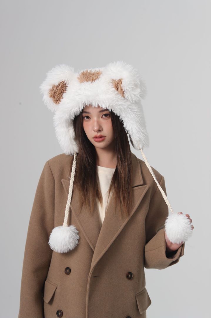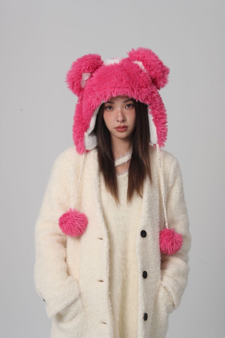 かわいいベアー帽子マフラー一体女性冬耳雷鋒帽ぬいぐるみ自転車保温スキー