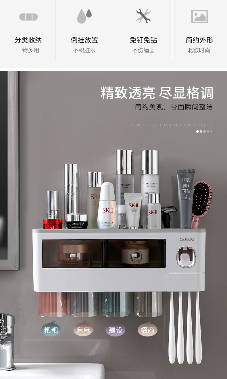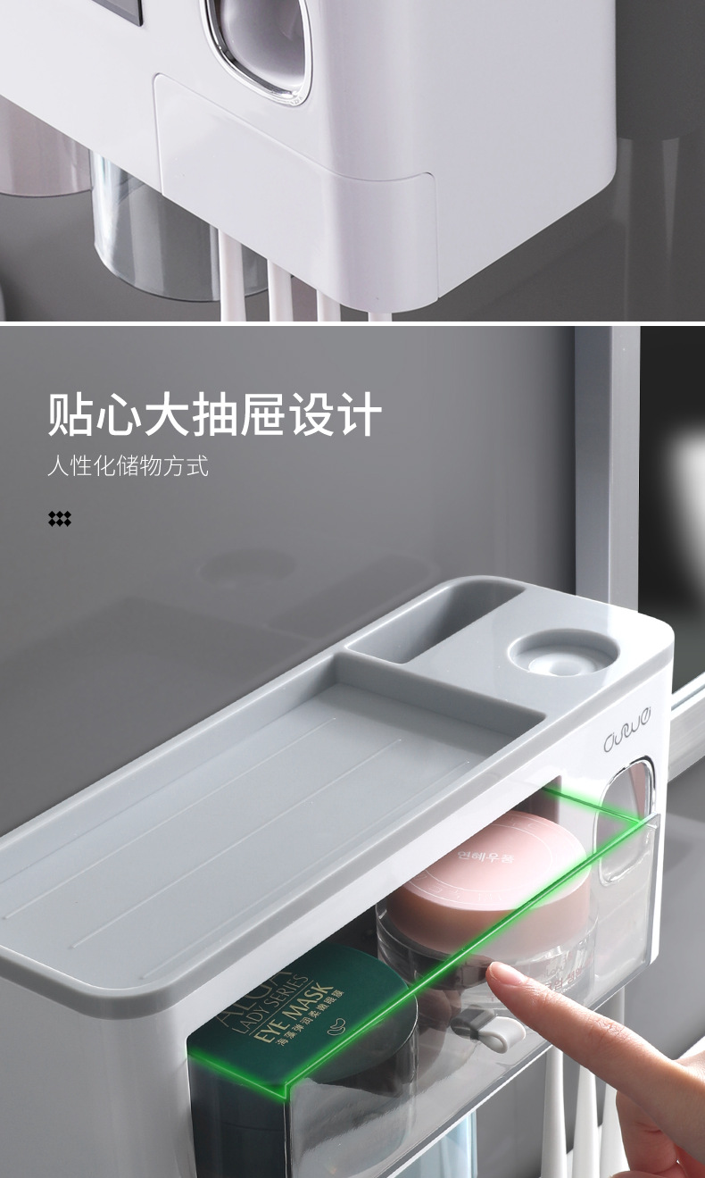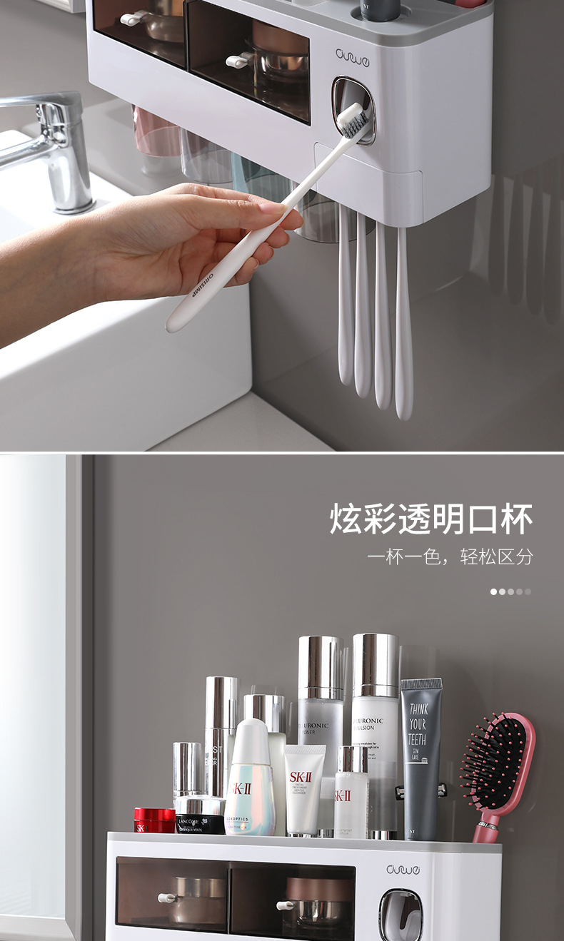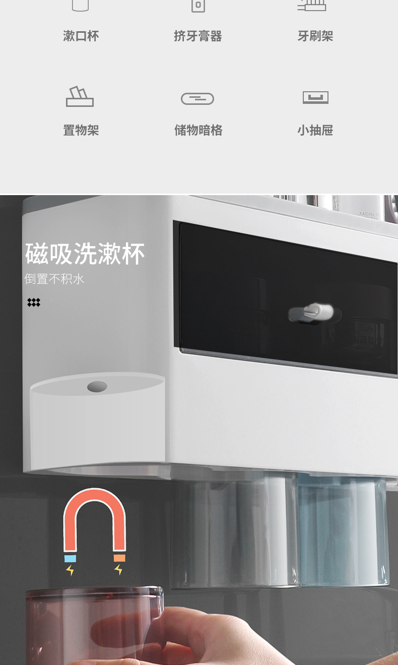 壁挂式牙刷架洗漱套装磁吸单抽屉收纳置物架带挤牙膏器牙具架