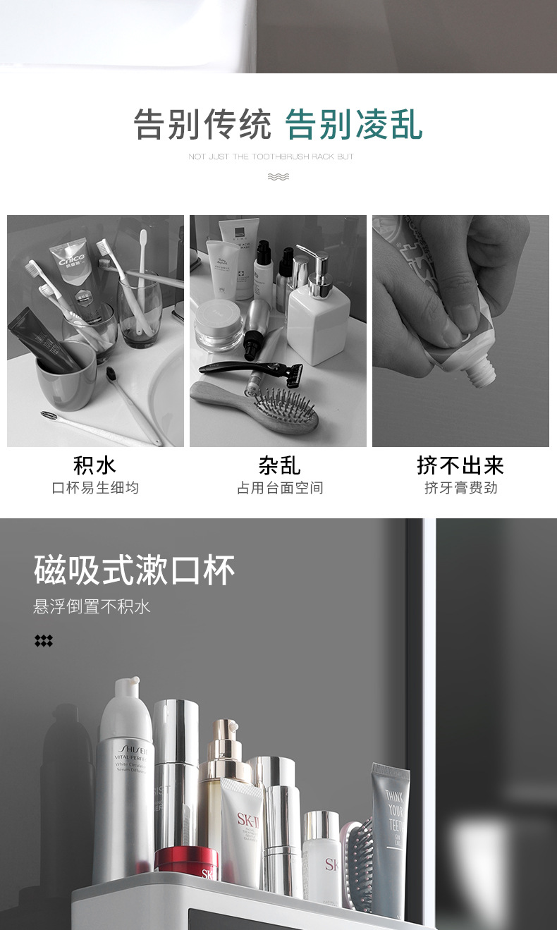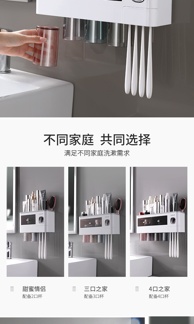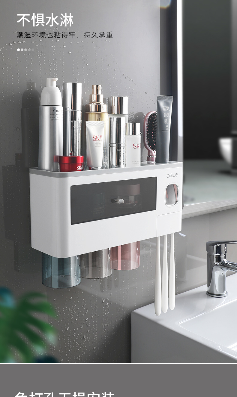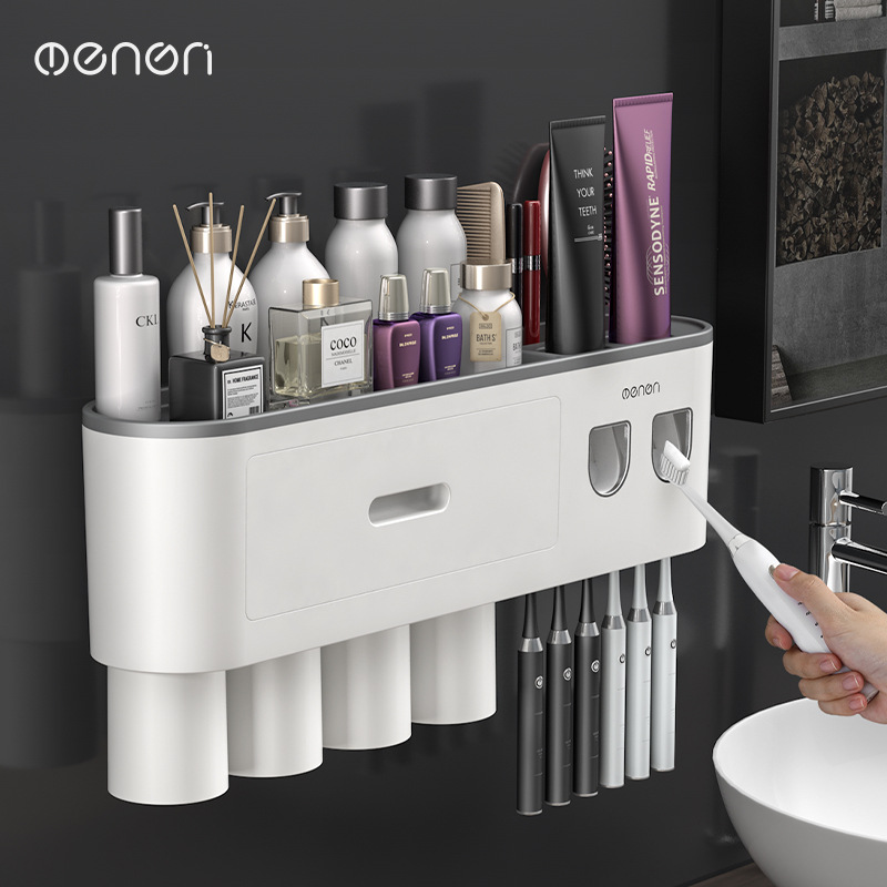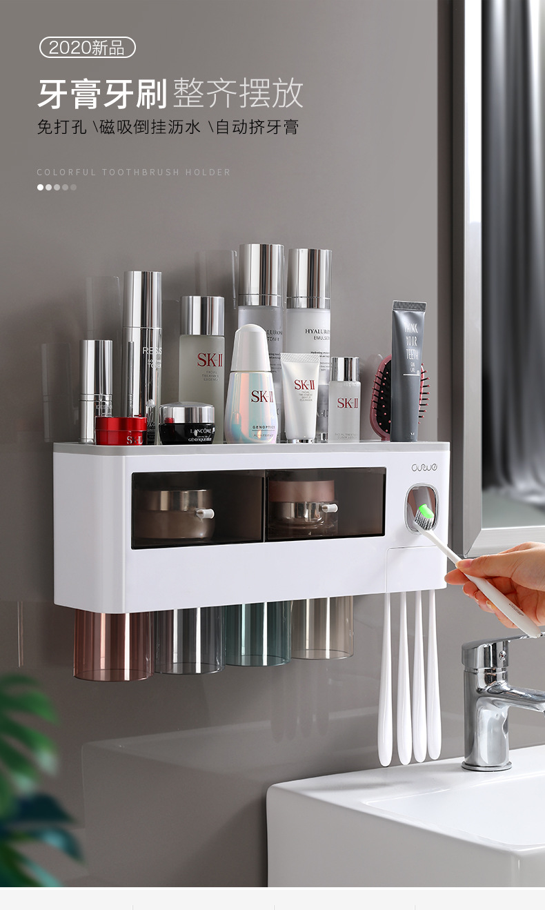 壁挂式牙刷架洗漱套装磁吸单抽屉收纳置物架带挤牙膏器牙具架