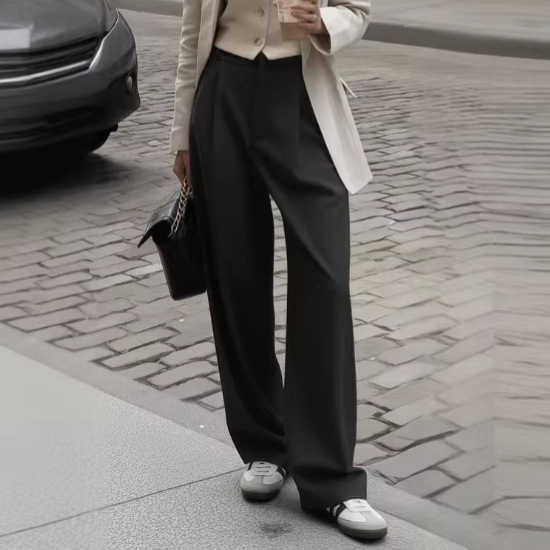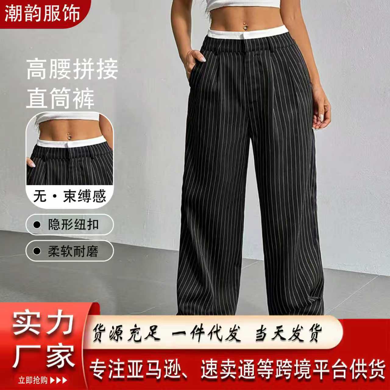 欧美跨境亚马逊2025年女士新款高腰垂感直筒简约西装长裤女