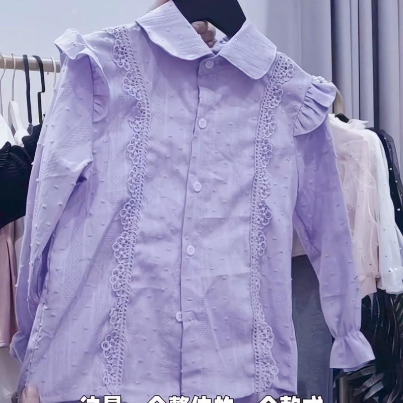 女の子のシャツ春の服2023新しいサイズの子供の長袖のシャツの子供の春と秋の空気のレースの上着の卸売り
