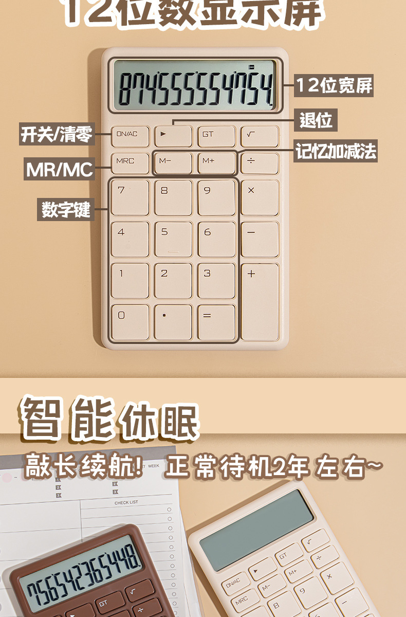 ins简约风计算器 12位办公小型便携考试计算机生活财务会计工具