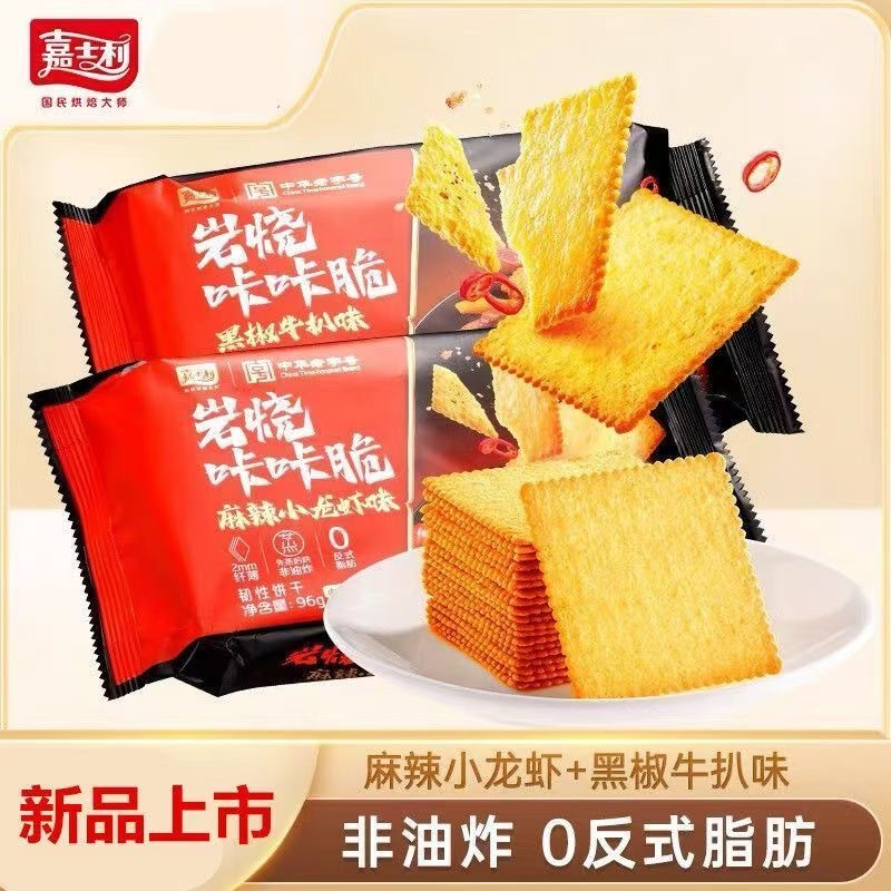 嘉士利岩焼カチカチカチ96g麻辣小ロブスター黒椒牛掻き味靭性非揚げクラッカー