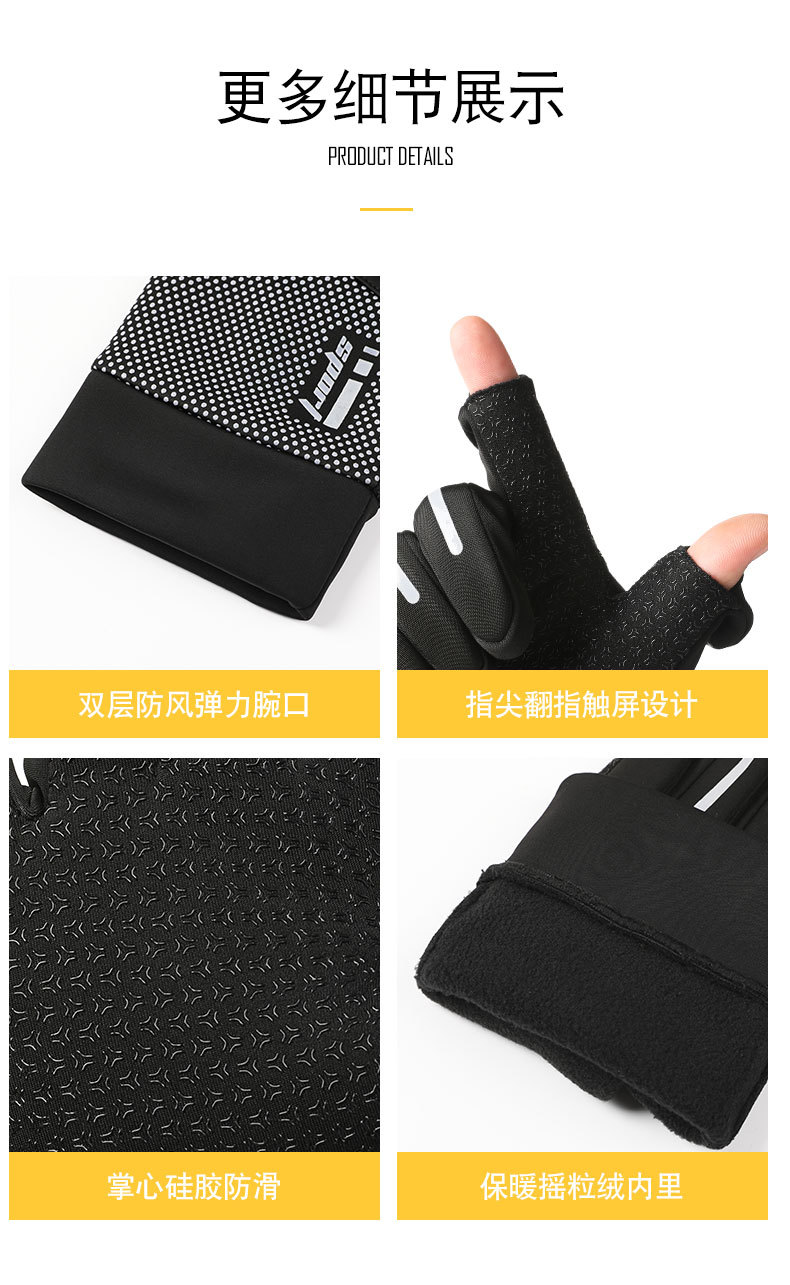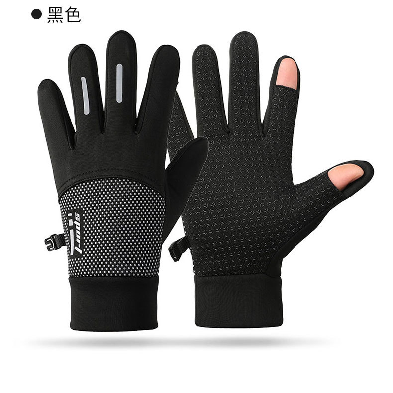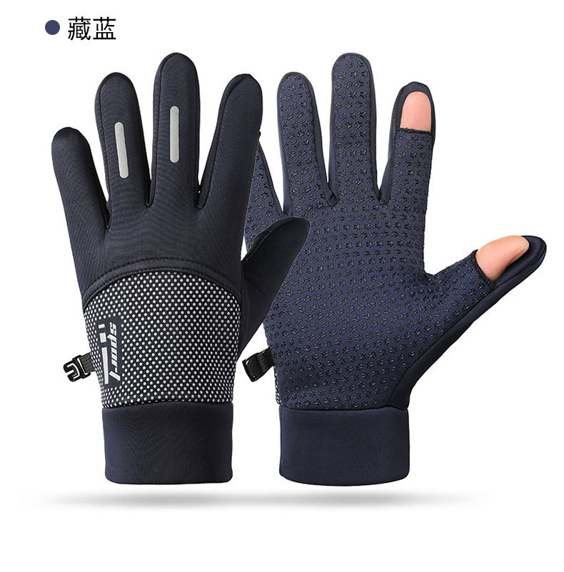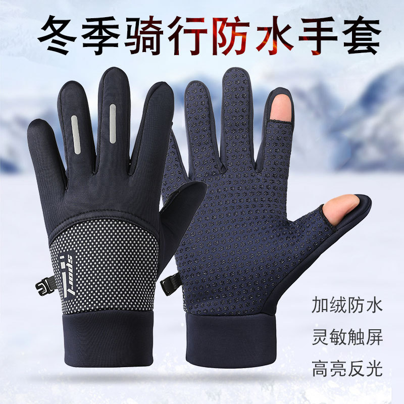 加绒骑行手套秋冬季触屏防水防风骑行开车送外卖露二指保暖手套男