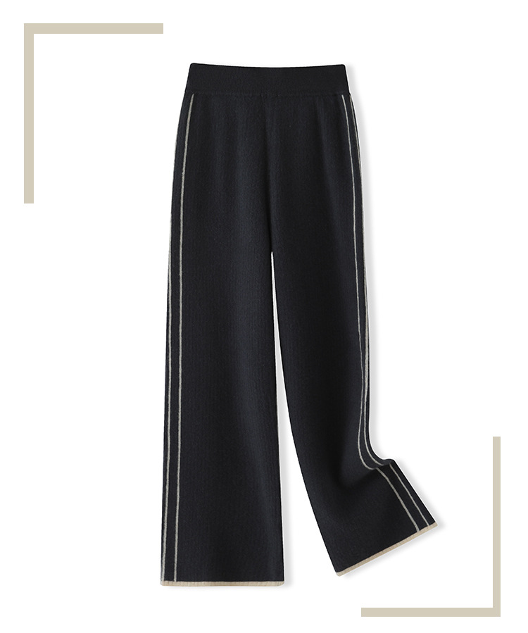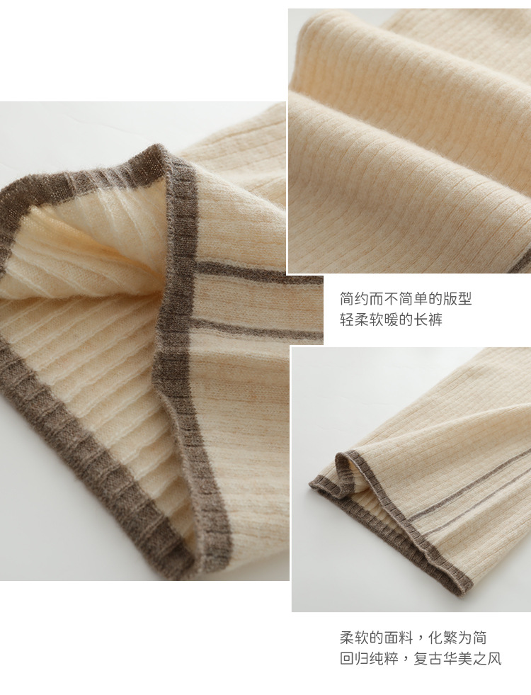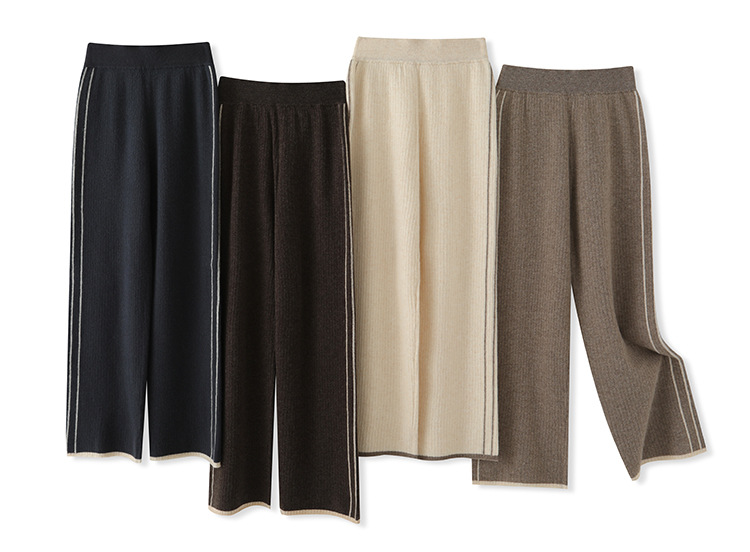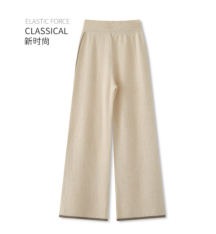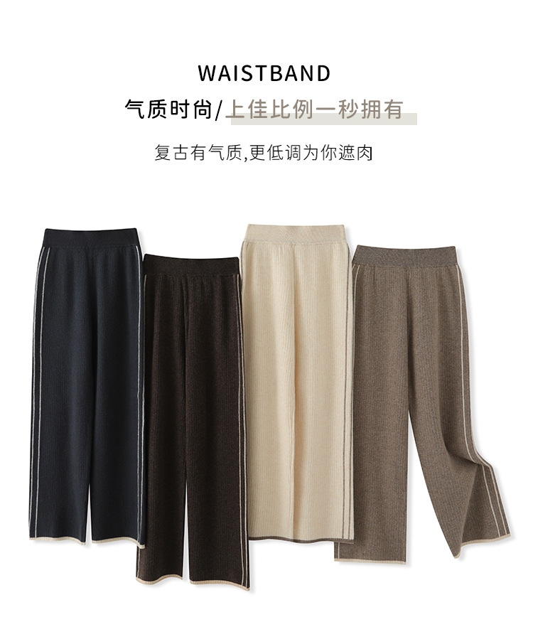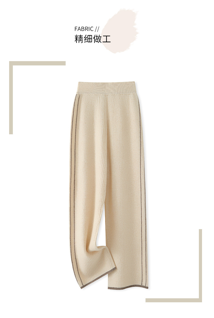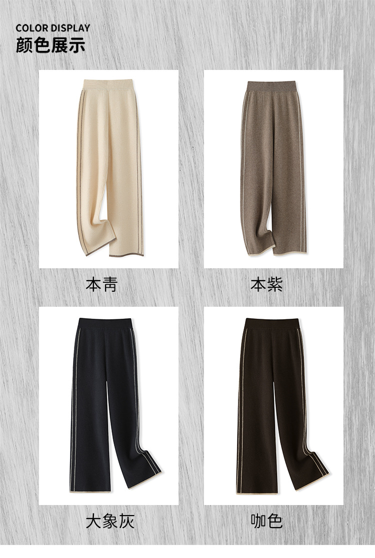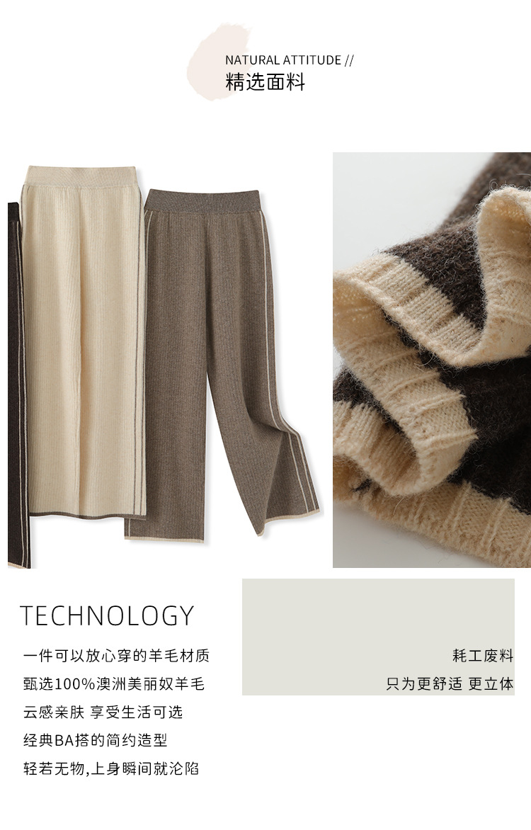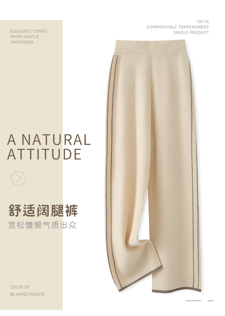 2023秋冬新作ウール厚手縦条ジャカード広腿ズボン直筒高腰垂感カシミヤニットズボン女